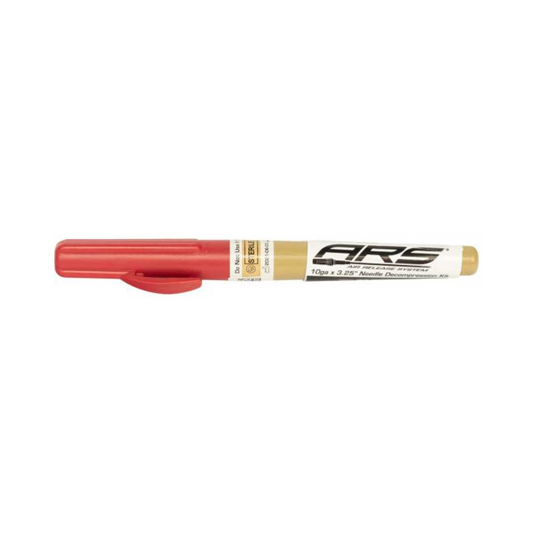 Le kit de décompression à aiguille ARS® breveté est conçu pour fournir la longueur d'aiguille/cathéter appropriée pour pénétrer dans l'espace pleural chez 99 % des patients. Grâce à ses caractéristiques de sécurité intégrées, l'ARS® améliore les chances de succès lors du traitement des blessés présentant des signes et des symptômes de pneumothorax sous tension.