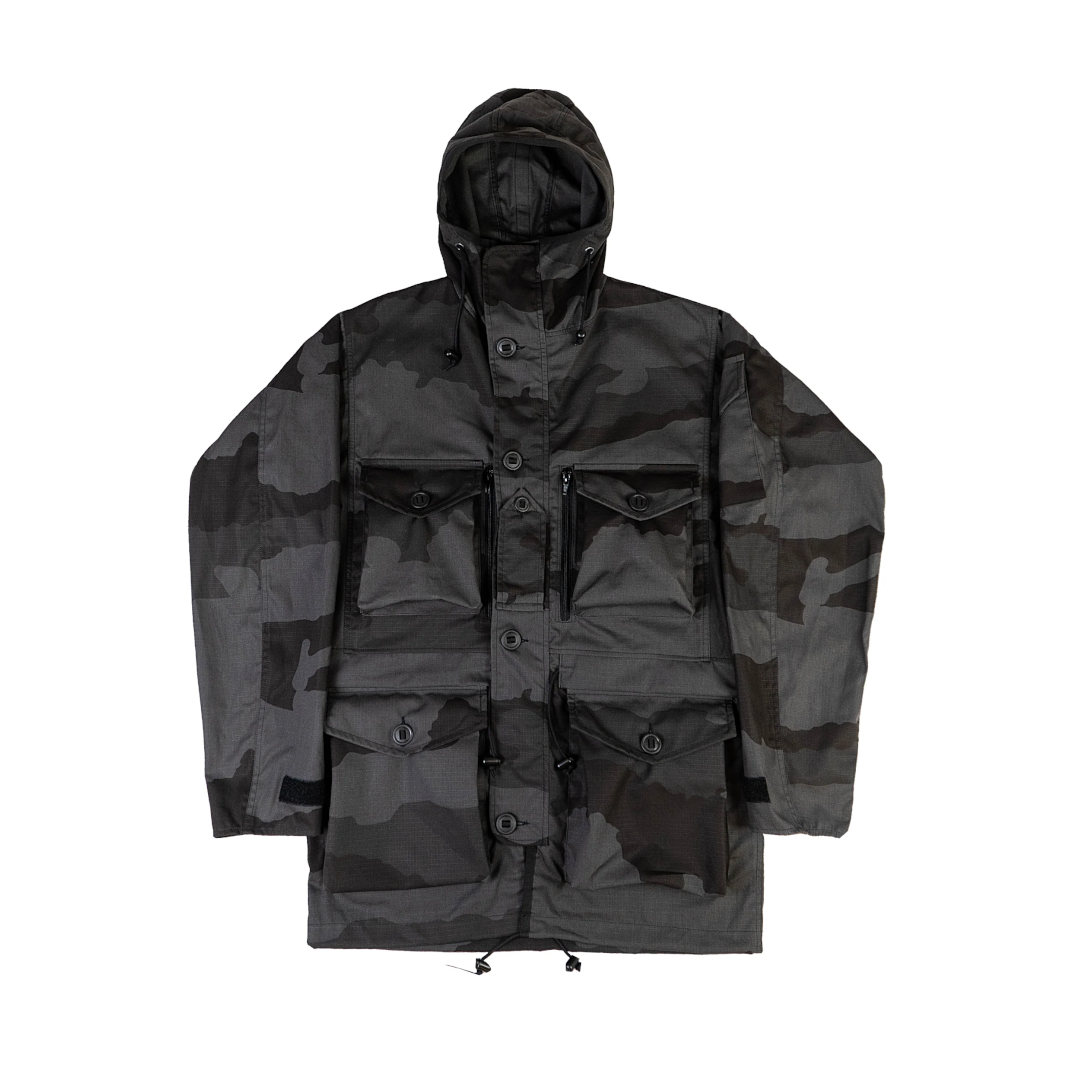 La B110 Combat Smock d’Arktis en French Desert Noir est une version overdyed issue d’un camouflage désert recoloré pour un usage nocturne et opérations discrètes. Inspirée des pratiques militaires historiques consistant à reteindre des tenues existantes pour adapter leur signature visuelle, cette version conserve l’ADN opérationnel des smocks britanniques tout en proposant une signature plus sombre adaptée aux environnements à faible luminosité.