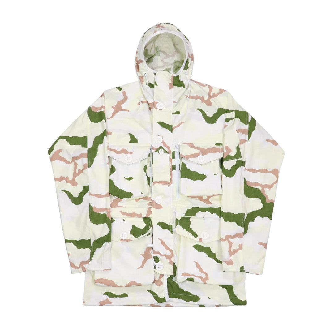 L’origine de la B110 remonte aux grands classiques de l’habillement militaire britannique, notamment la célèbre smock parachutiste « Denison » de la Seconde Guerre mondiale. Au fil du temps, la coupe et les motifs camouflage ont évolué, passant des motifs « brushstroke » historiques aux camouflages plus modernes comme le DPM et les smocks utilisés par le SAS. Malgré une conception volontairement simple, ce type de veste reste aujourd’hui largement utilisé par de nombreuses forces armées à travers le monde.