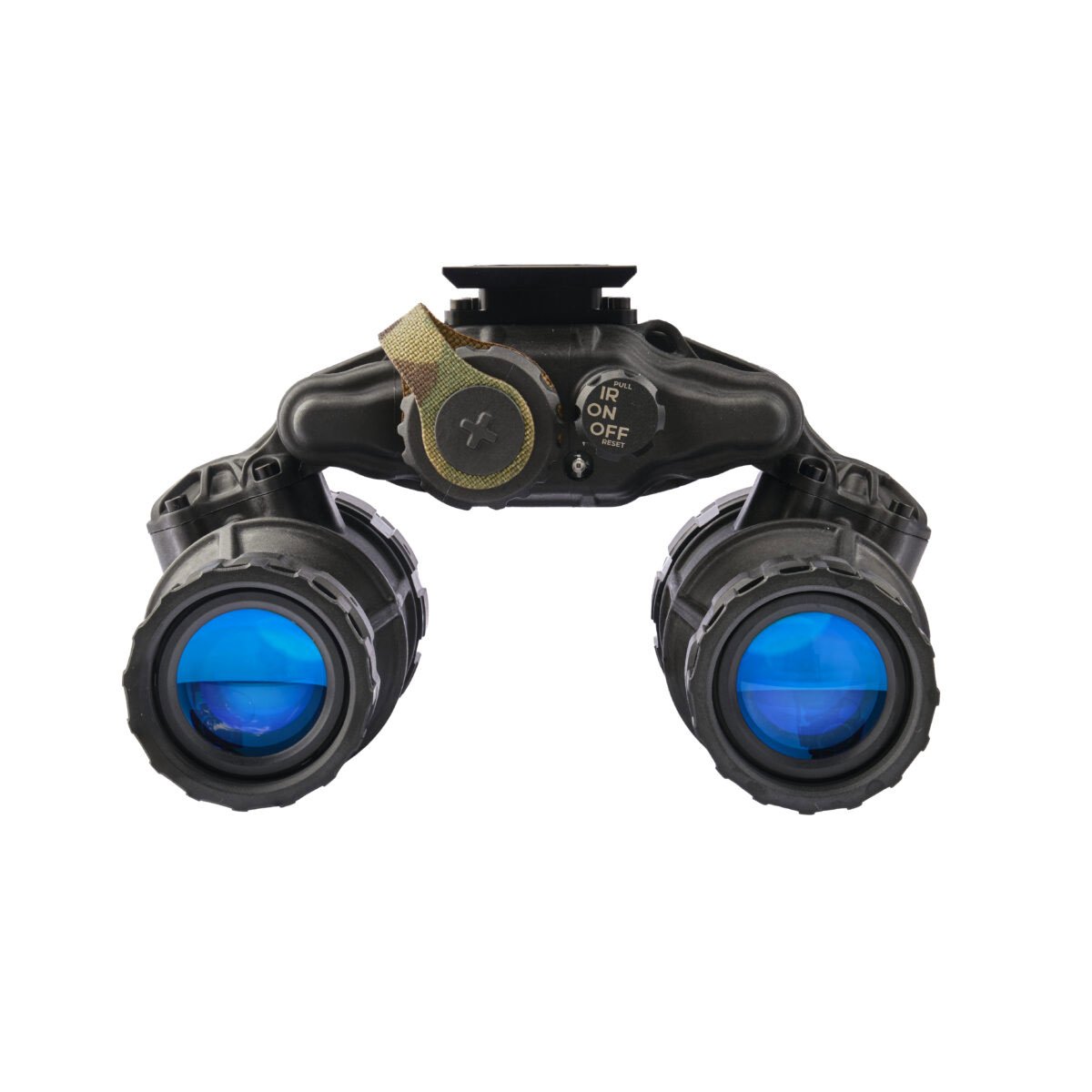 Les binoculaires DTNVS combinent des matériaux légers et un profil bas lorsqu'elles sont repliées sur le casque, ce qui réduit la fatigue du cou lors de missions prolongées. Les binoculaires DTNVS disposent d'un ensemble complet de fonctionnalités avec ON/OFF individuel sur le côté pour chaque oculaire et Flip-Up ON/OFF quand il est replié pour éviter les éclaboussures sur le casque. Pour compléter les fonctionnalités des DTNVS, il intègre une LED IR intégrée pour les missions rapprochées avec un indicateur IR-ON séparé et un indicateur de batterie faible dans le champ de vision. Pas de port de batterie externe - Pourquoi ? Le DTNVS utilise des piles CR123A standard que l'on trouve couramment dans les lasers ou les lampes de poche. Une seule batterie fournit plus de 25 h d'autonomie. Cependant, comme les pods s'éteignent lorsqu'ils sont retournés et réduisent donc de moitié la consommation d'énergie, la plupart des utilisateurs signalent jusqu'à 35 h sur une seule batterie.