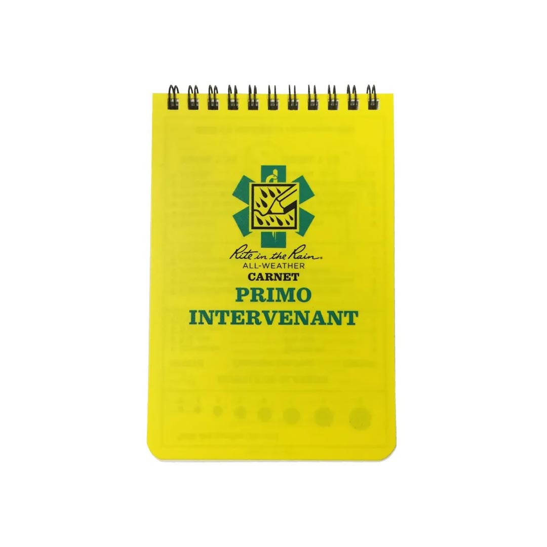 Calepin secourisme primo-intervenant développé suite aux attentats ayant touchés la France, les administrations ont exprimé le besoin d'une solution pour permettre de faire face à des nombreuses victimes (Mass Casualty evenement). Ce calepin permet de suivre un cheminement logique, de ne rien oublier et de gagner du temps pour la transmission des éléments à l'arrivée des secours médicalisés. La face recto de chaque fiche comporte un bilan lésionnel à remplir tandis que le côté verso comporte les renseignements administratifs, le suivi des gestes effectués et de l’évolution de la victime. D’un format « pocket » (10x15cm), ce carnet rentrera dans toutes vos poches de pantalons et trouvera sa place dans tous vos kits médicaux individuels (IFAK, kit EDC) ou collectif et sac santé véhicule ou médecin. Résistant à l'eau, Il permet d'écrire sous la pluie avec n'importe quel crayon à papier, stylo feutre ou à bille.