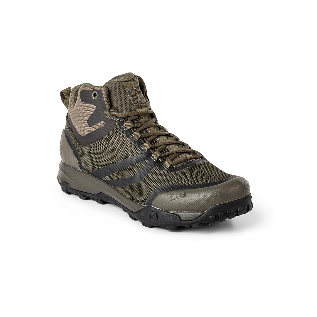 Chaussure de terrain à tige moyenne et innovante, elle a été conçue en partant de la semelle avec une plaque de support 5.11 A.T.L.A.S. Un système d'aide à la charge tout-terrain qui démultiplie la force pendant le port de charge. Elle est dotée d'une protection en TPR aux orteils et au talon moulés en 3D et elle possède une semelle extérieure antidérapante et résistante à l'huile pour une bonne accroche et un bon amorti.
