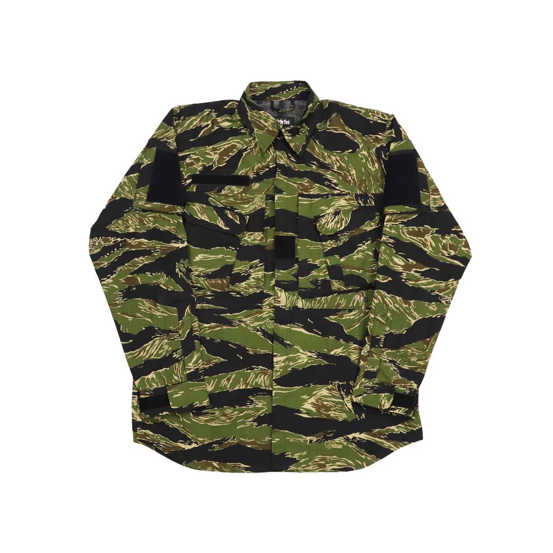 Chemise de combat de type guérilla avec l'authentique Tiger Stripe™. Elle offre une coupe traditionnelle très confortable avec un tissu ripstop léger. La maille d'aération dorsale souple permet une meilleure ventilation, dont une large ventilation dans le dos de la chemise, pour rester au frais et au sec. Que ce soient la chaleur ou la cadence de travail, cela facilitent l'aération pendant les activités dynamiques en régions chaudes et humides. Les poches sont configurées pour une utilisation ergonomique et facile. Les poches de poitrine à "double accès" vous permettent d'accéder facilement à votre équipement, même lorsque votre mobilité est réduite. Les poches de bras sont discrètes, ce qui évite les accrochages et les encombrements inutiles. Présence également d'emplacements auto-agrippants sur les bras pour les patchs. Son tissu quadrillé ripstop est résistant aux déchirures, silencieux et déperlant. Elle possède un emplacement bande patronymique, des poches ergonomiques et d'autres petites fonctionnalités pratiques.