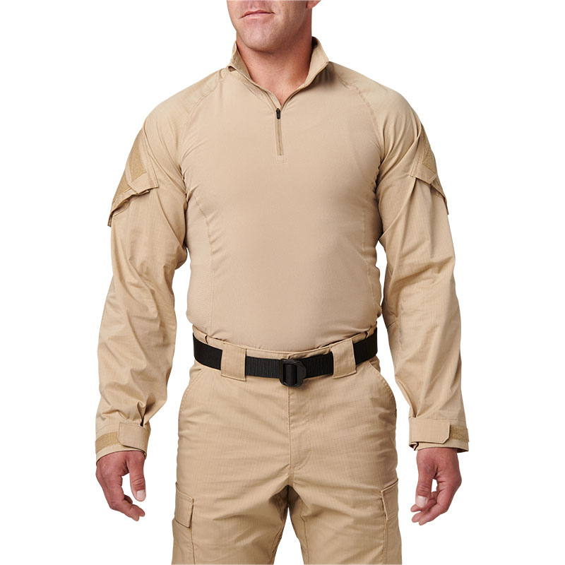 Visez la performance avec la chemise à manches longues Flex-Tac® TDU® Rapid. Conçu pour les forces de l'ordre et les professionnels de l'action tactique, ce haut avec une fermeture à glissière possède une élasticité mécanique et des coudes articulés renforcés pour une mobilité maximale. Le tissu Flex-Tac® ripstop sur le haut du corps, les manches et le col est extensible sans compromettre la solidité. Des panneaux en mesh sur les côtés et sous les bras vous permettent de rester au frais lorsque la mission vous échauffe. Les coutures plates et souples évitent les irritations. Des poches discrètes sur les épaules permettent de garder les éléments essentiels à portée de main et de les sécuriser grâce à des fermetures auto-agrippantes. Quel que soit le défi, vous serez efficace dans cette chemise à manches longues Flex-Tac® TDU Rapid.