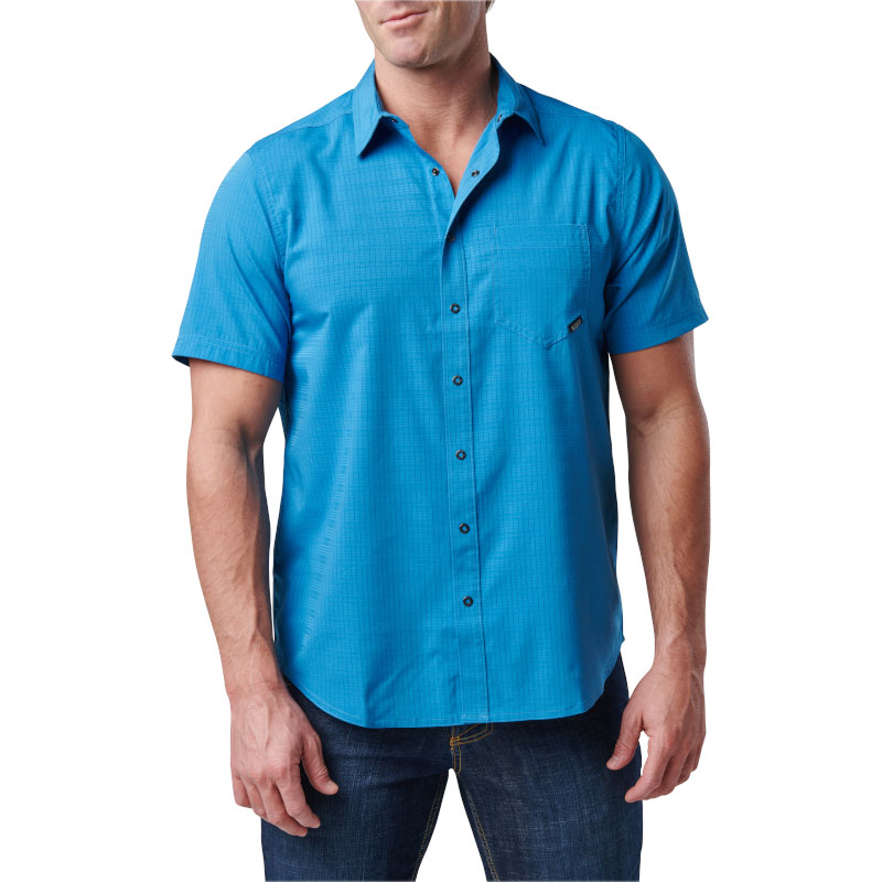 Regardez-y de plus près et vous verrez que la chemise à manches courtes Aerial est conçue pour vous aider à rester frais et alerte. Cela commence par un tissu hautement respirant, qui évacue l'humidité, et un corps en tissu 100 % polyester très léger avec une doublure en maille sur l'empiècement arrière. Le tissu Vent-Tac™ vous assure une ventilation de la transpiration à travers et une excellente circulation de l'air. La patte de boutonnage RAPIDraw™ vous offre la tranquillité d'esprit de savoir que vous pouvez accéder rapidement à votre équipement dissimulé.