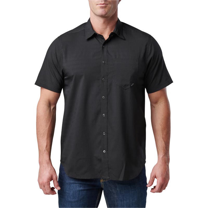 Regardez-y de plus près et vous verrez que la chemise à manches courtes Aerial est conçue pour vous aider à rester frais et alerte. Cela commence par un tissu hautement respirant, qui évacue l'humidité, et un corps en tissu 100 % polyester très léger avec une doublure en maille sur l'empiècement arrière. Le tissu Vent-Tac™ vous assure une ventilation de la transpiration à travers et une excellente circulation de l'air. La patte de boutonnage RAPIDraw™ vous offre la tranquillité d'esprit de savoir que vous pouvez accéder rapidement à votre équipement dissimulé.