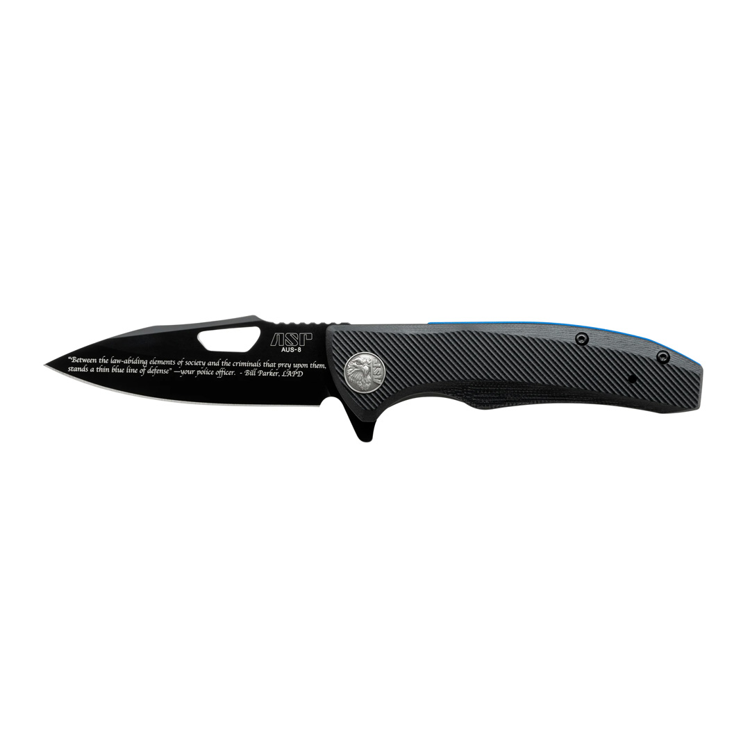 - Avec l'utilisation appropriée d'une pierre de qualité, d'une tige ou d'un autre dispositif d'affûtage, la lame AUS-8 s'affûte aisément et maintient bien un bord.