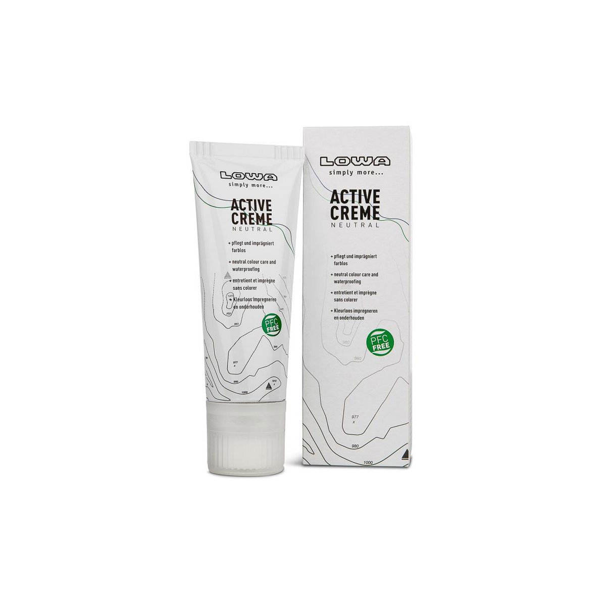 La crème LOWA ACTIVE est le soin nettoyant intensif incolore idéal pour toutes les chaussures de loisirs, de montagne et de randonnée. Cette crème préserve durablement la souplesse du cuir, et évite le dessèchement et les craquelures causées par une utilisation régulière. Utilisée en association avec le spray LOWA WATER STOP PRO, elle protège parfaitement vos chaussures LOWA. LOWA ACTIVE CRÈME ne contient pas de PFC. Contenance 75 ml.