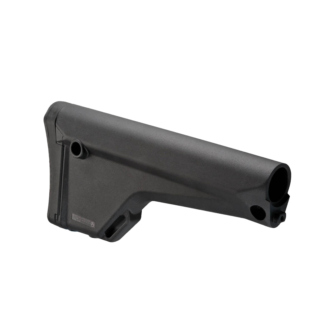 La crosse MOE (Magpul Original Equipment) est un remplacement direct des crosses de fusil AR15/M16 A1 et A2 utilisant l'extension de récepteur standard (tube amortisseur). Conçue comme une amélioration de base, cette crosse possède un passage de bretelle intégrée de 1,25", des points de montage QD avant et arrière supplémentaires. La plaque de couche caoutchoutée antidérapante est remplaçable et un compartiment de rangement interne est accessible par le couvercle de rangement arrière.