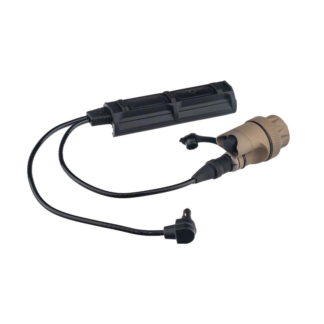 Bouton-poussoir clic-on / off DS00. Le SR07-D-IT permet l'activation à distance momentanée, séparément ou simultanément, de deux outils d'éclairage montés sur l'arme : une lampe SureFire WeaponLight et un laser ATPIAL ou DBAL. Des câbles séparés connectent chaque appareil à la plate-forme de commutation. Deux pressostats sont intégrés à une seule pince encliquetable pour une fixation aisée du rail Picatinny de votre fusil d'assaut. Il y a une fonction de désactivation du système pour éviter un déclenchement intempestif. Le boîtier scellé en deux pièces avec joint torique pour une parfaite imperméabilité pivote pour faciliter le positionnement précis du commutateur.