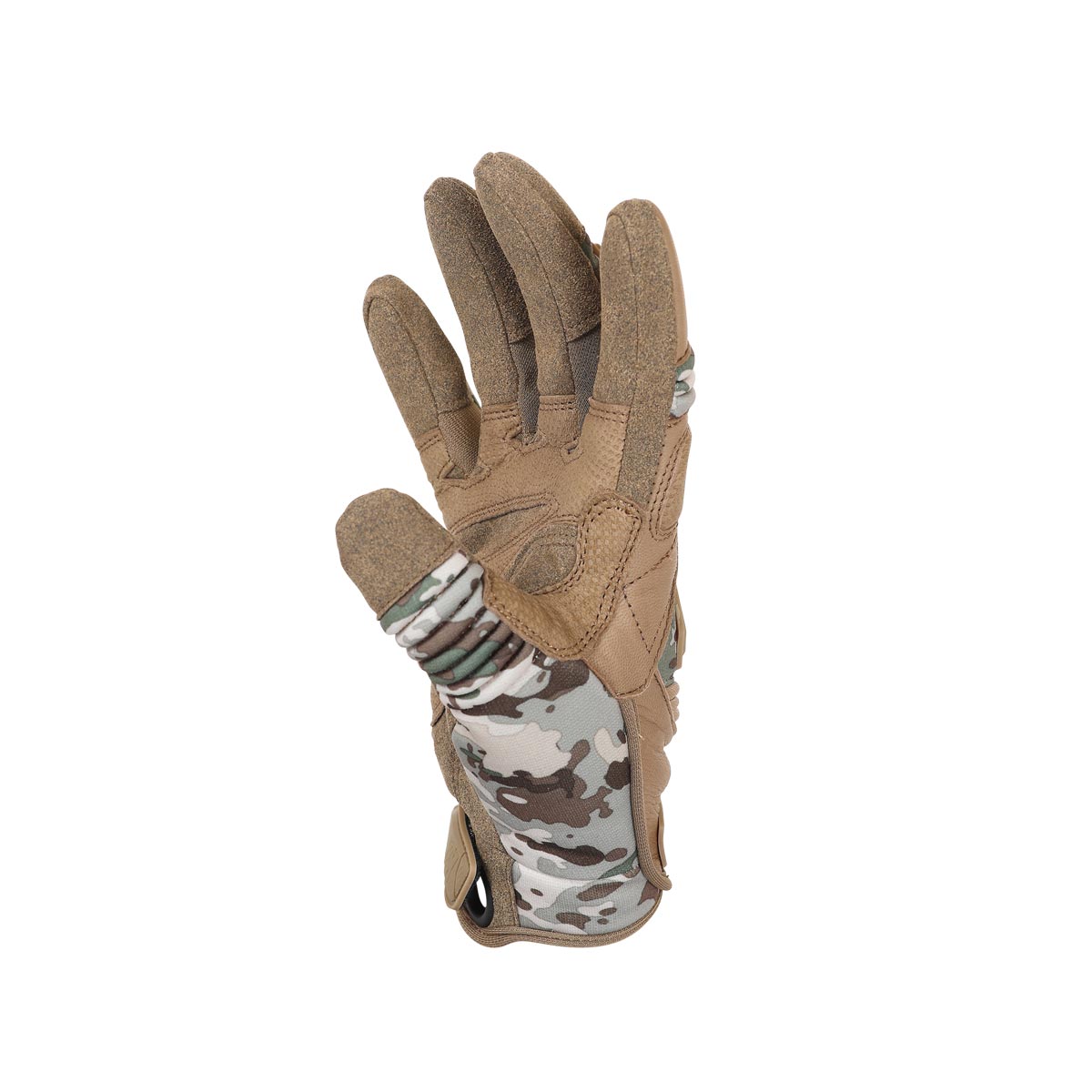 Paire de gants camouflés pour les opérations tactiques, très confortables avec un coupe ergonomique parfaite pour la main. Ils possèdent une protection souple des phalanges et des doigts contre les chocs et sont compatibles avec les écrans tactiles.
