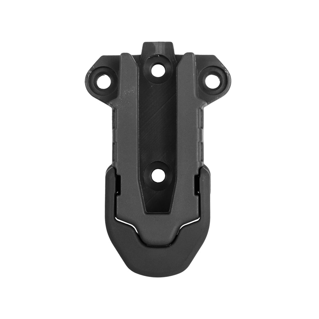 La glissière femelle RSS Radar 1957 est un support de fixation rapide conçu pour accueillir tous les holsters et accessoires équipés du système mâle RSS. Fabriquée en polymère injecté haute résistance, elle permet de fixer ou de retirer un holster en un seul geste, sans outils, tout en assurant une stabilité et une sécurité optimales.