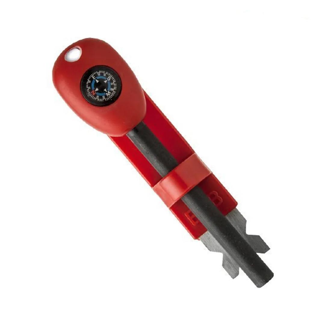 Pierre à feu avec boussole intégrée et grattoir. La pierre à feu BCB avec boussole intégrée et grattoir servant également d'étui pour la pierre à feu saura répondre à tous vos besoins pour l'allumage de votre feu en stage survie ou en randonnée. Le manche très ergonomique de la pierre à feu assure une très bonne prise en main même mouillé. Le grattoir, permettant le rangement de la pierre à feu, assure une large production d'étincelles et ne nécessite pas de chaine de maintien pouvant être génante lors de la manipulation. La couleur rouge de cette pierre à feu BCB permet, en cas de perte, de mieux la retrouver parmi les feuilles et les herbes au sol.
