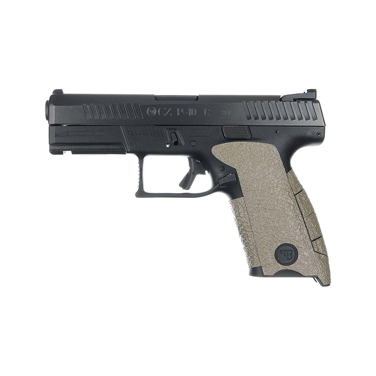 Grip caoutchouc sable pour CZ P10 compact 9mm medium backstrap offrant une meilleure préhension en situation tactique ou pour le tir sportif. Le grip enserre partiellement la poignée de l'arme mais laisse apparent le logo CZ. Le grip caoutchouc améliore le confort de la poignée pistolet, sans avoir une surface abrasive rendant son utilisation agréable et idéale pour un port discret ou avec un holster inside.