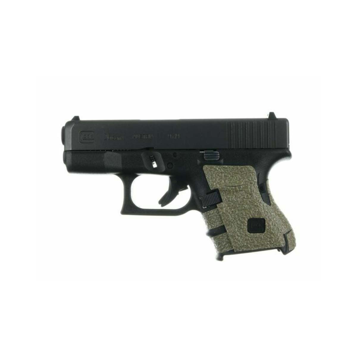 Grip caoutchouc sable pour Glock 26, 27, 28, 33, 39 (gen 4) medium backstrap offrant une meilleure préhension en situation tactique ou pour le tir sportif. Le grip enserre complètement la poignée de l'arme mais laisse apparent le logo Glock. Le grip caoutchouc améliore le confort de la poignée pistolet, sans avoir une surface abrasive rendant son utilisation agréable et idéale pour un port discret ou avec un holster inside.