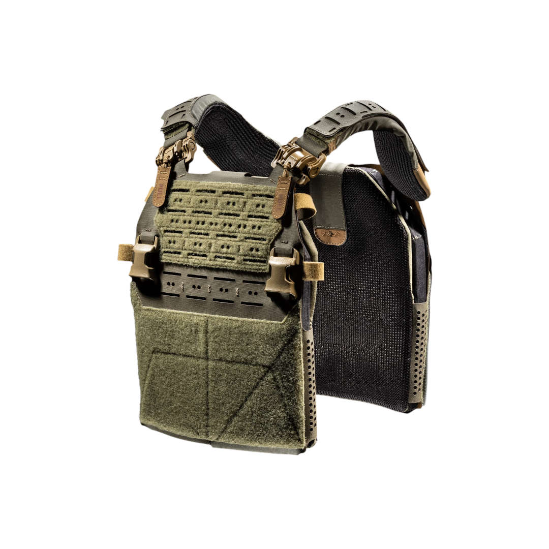Les surfaces internes comportent un rembourrage en mousse PE à cellules fermées associé à un tissu 3D air mesh perforé, garantissant une ventilation constante et un confort accru pendant les longues opérations. Les poches porte-plaques Open Top assurent une compatibilité universelle avec la majorité des plaques balistiques standard tout en facilitant le montage des poches et accessoires frontaux.