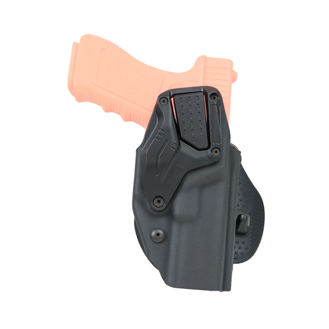 Le holster LTG-Less spécialement conçu pour le Glock 17 allie sécurité et vitesse de dégainage. Fabriqué en Kydex rigide moulé, il offre une tenue parfaite de l’arme tout en permettant un dégainage naturel sans levier visible grâce au système LTG-Less (déverrouillage interne à la prise). Conçu pour un usage professionnel, ce modèle de niveau II garantit une rétention fiable tout en conservant une extraction fluide.