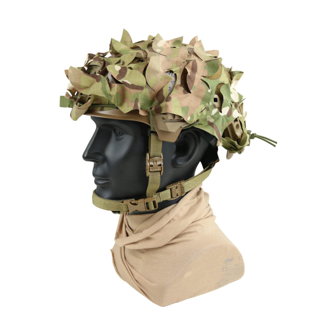 Le système de serrage par cordon permet une mise en place rapide et un ajustement sécurisé sur le casque, sans gêner les rails latéraux, les systèmes NVG ou les accessoires montés. Légère et peu encombrante, cette housse constitue un accessoire simple et efficace pour optimiser le camouflage du casque sans modifier sa configuration.