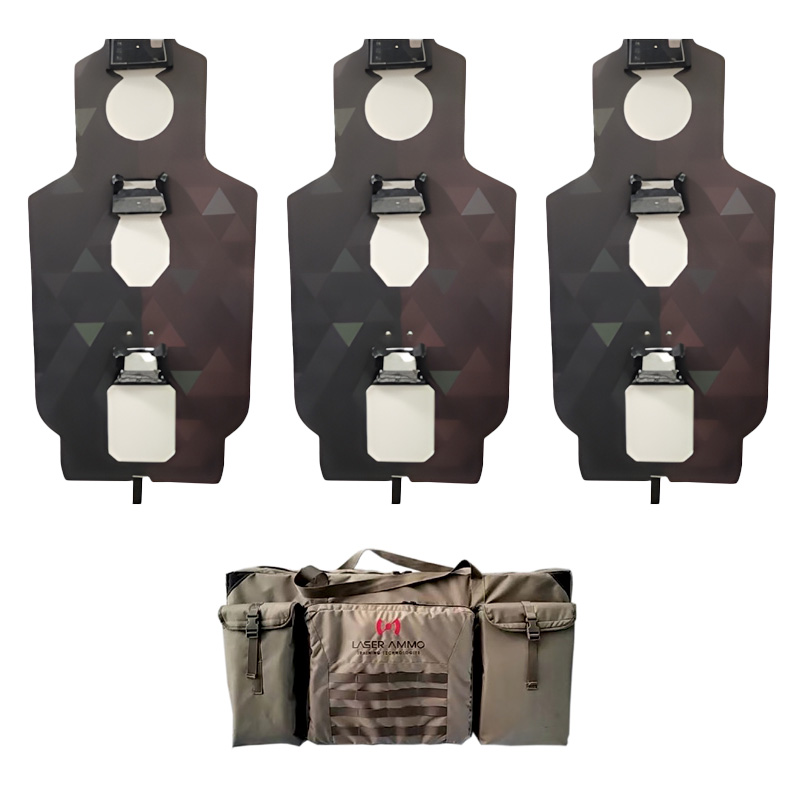 Cibles réactives CQB de taille humaine avec 3 zones par cible. Kit de 3 cibles facilement transportable pour l'entrainement au tir en simulation.