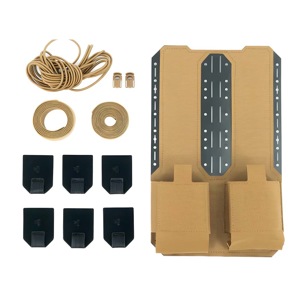 Le Kit Radio Caddy (RAD CAD) a été conçu en collaboration avec les unités ASOS de la NGS et de l'AFSPECWAR. Le RAD CAD fournit un panneau organisationnel rigide pour le transport de deux radios portatives, telles que les PRC-152A, PRC-161, PRC-163, PRC-148 MBITR et d'autres dispositifs MANET tels que le Persistent Systems MPU-5. Le RAD CAD est équipé de poches élastiques pour une rétention sûre de la radio sans sacrifier l'accessibilité pour les changements de batterie. Il possède aussi un système de gestion des câbles MOLLE/cordon antichoc pour un stockage sûr des câbles et des antennes radio. Le RAD CAD a été dimensionné pour être transporté dans la poche extérieure zippée du FlatPack et du FlatPack Plus. Il est également doté d'un crochet Velcro pour un transport sécurisé dans le compartiment principal du FlatPack et du FlatPack Plus (ou de tout autre sac de taille similaire).