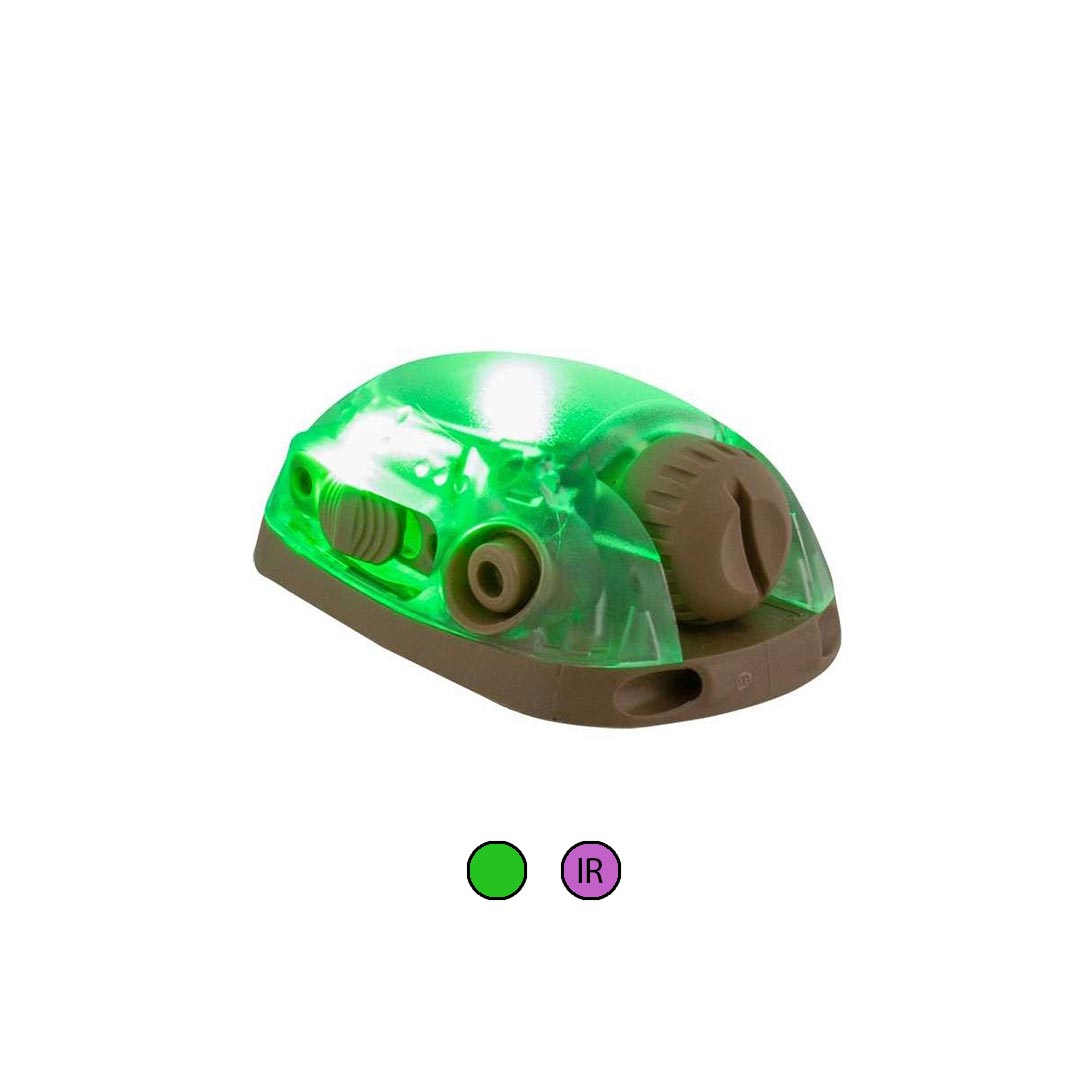 Ce modèle combine les modes vert visible et infrarouge (IR), avec une priorité automatique à l’IR pour éviter toute détection accidentelle. Grâce à la technologie MultiVibe™, l’utilisateur bénéficie d’un retour tactile par vibration et d’un repérage des positions par simple contact, même avec des gants. La lampe se fixe solidement aux casques ou équipements grâce à un système auto-agrippant 3M installé à l’arrière du boîtier.