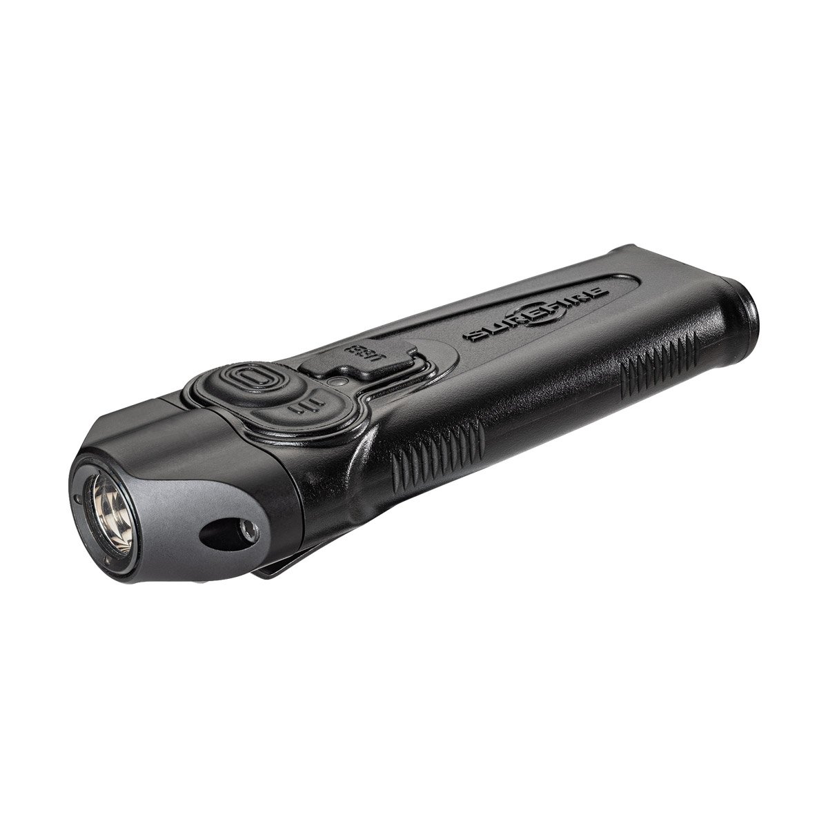 Le concept de la lampe Stiletto® rechargeable est d’être au format d’un couteau pliant pour pouvoir la porter au niveau de la poche de votre pantalon. Elle ne prend pas plus de place et comporte pourtant une batterie rechargeable au lithium avec une LED MaxVision Beam®. Elle possède 3 puissances de 5, 250 et 650 lumens de lumière blanche. Elle peut s’allumer avec un commutateur sur le dessus pour les différents modes (avec possibilité de programmer ses propres modes). Ou à l'aide du commutateur tactique arrière pour un allumage directe haute intensité, ou strobe si on appuie 3 fois de suite.