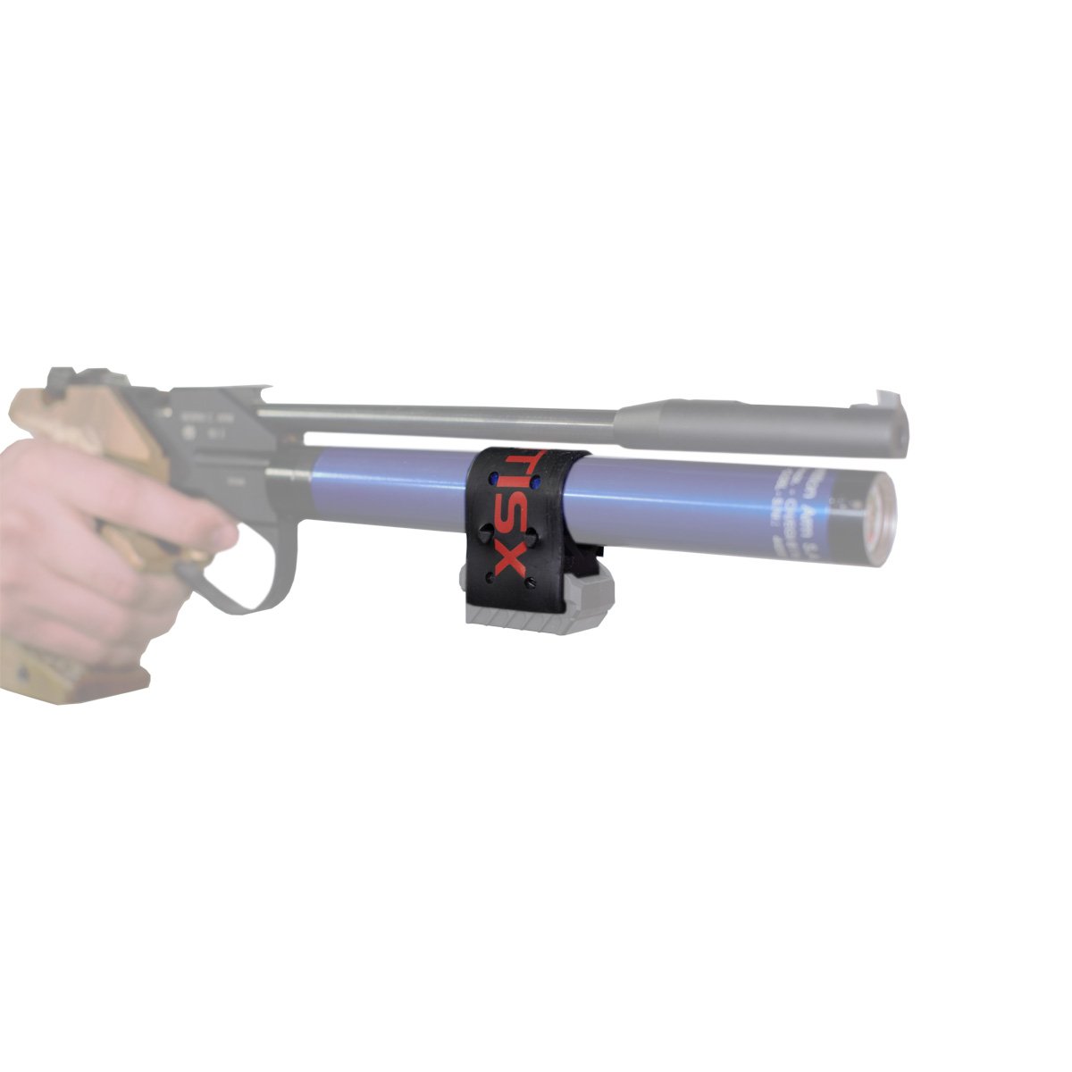 Cet adaptateur de rail est conçu pour être fixé sur le cylindre à air d'un pistolet à air comprimé de compétition à l'aide de la sangle élastique fournie. Cela permet de fixer le MantisX (non fourni) à votre pistolet de compétition.