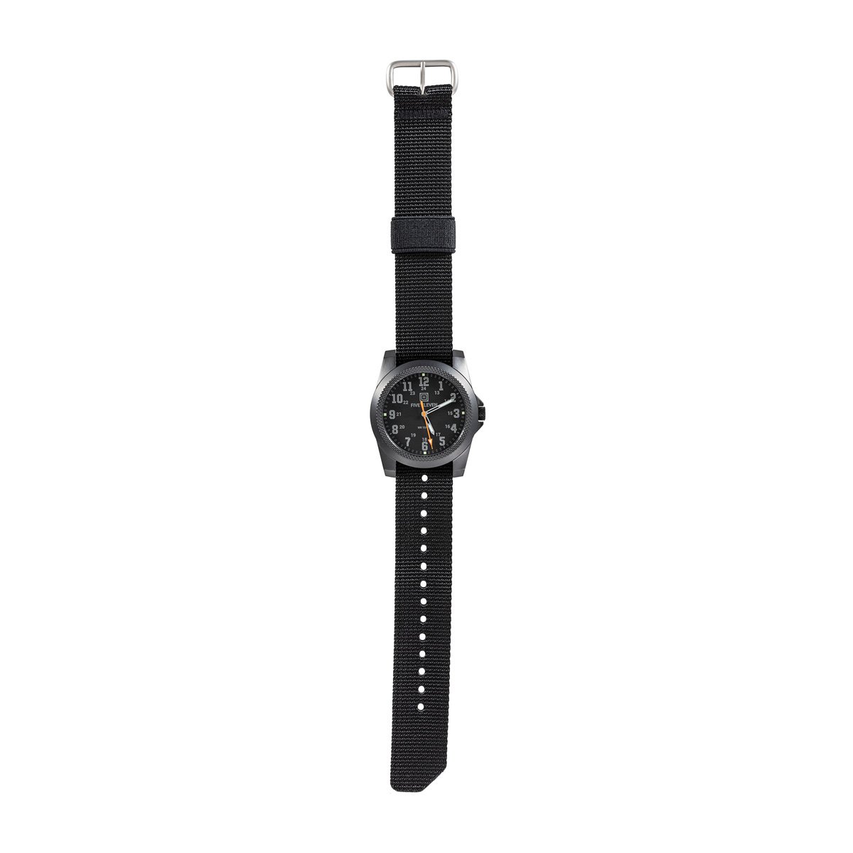 La montre 5.11 Pathfinder s'inspire des montres militaires portées dans le monde entier, où l'approche utilitaire et la fiabilité en milieu hostile sont essentielles à la mission. Les quarts d'heure phosphorescents permettent une meilleure lisibilité dans des conditions de faible luminosité. Un boîtier en acier inoxydable avec finition IP et un verre minéral résistant aux rayures protègent le mouvement japonais fiable de la montre. Dotée d'un bracelet en nylon résistant, cette montre est agréable à porter au quotidien, étanche jusqu'à 300 pieds et prête pour les missions extrêmes.