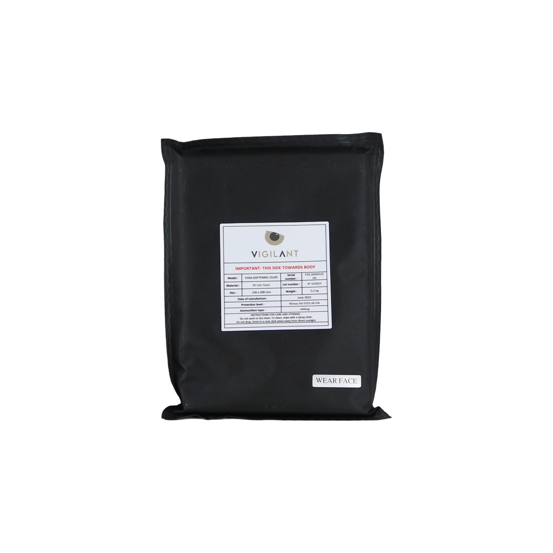L'insert de protection balistique souple 15x20 offre un très haut niveau de protection NIJ IIIA. Vendu à l'unité.
