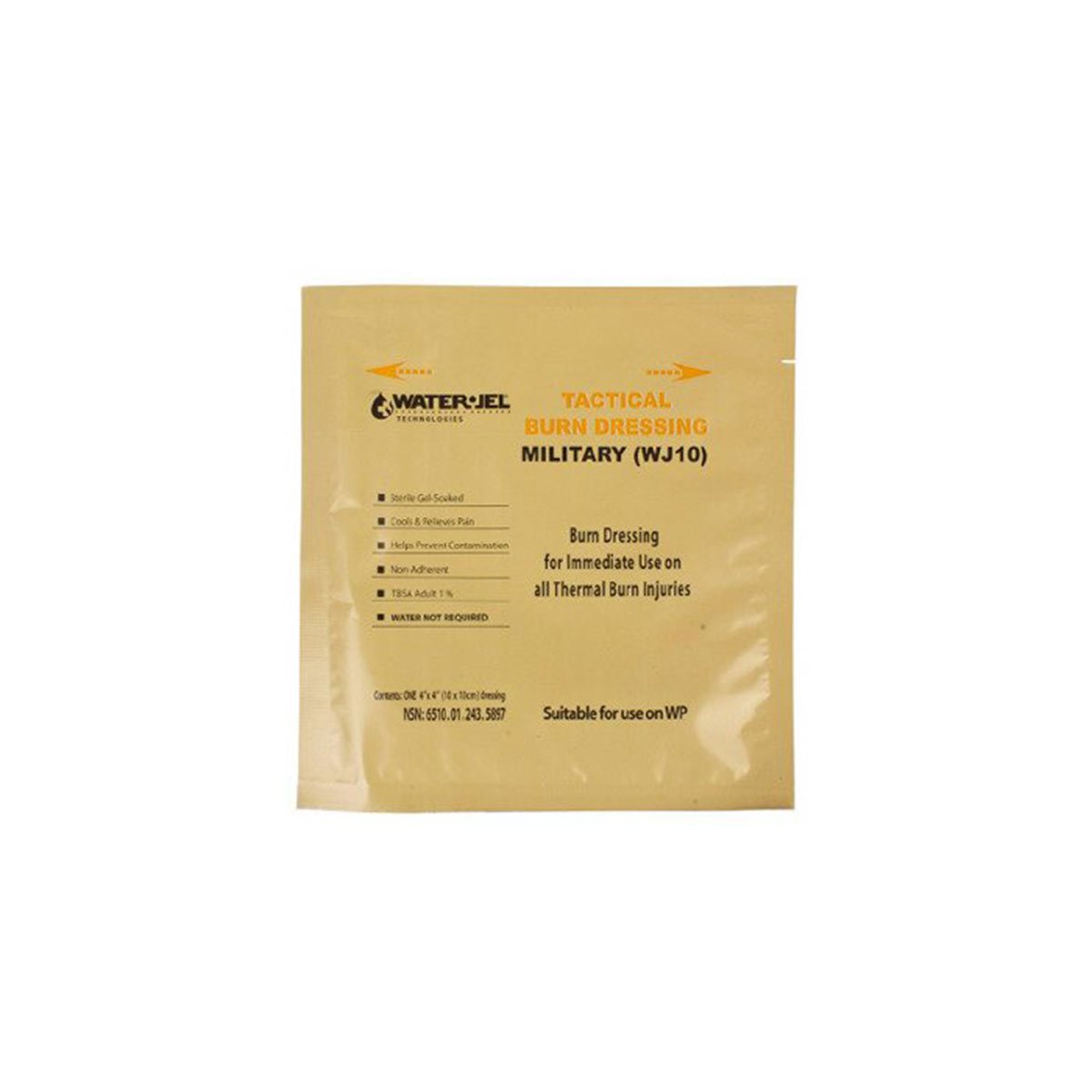 Pansement d'urgence de dimension compacte 10 x 10 cm pour brûlé avec un gel stérile qui permet un refroidissement immédiat de la brûlure 1°, 2° ou 3°. Water-Jel® tire la chaleur d'une brûlure tout en soulageant la douleur, refroidit la peau et protège contre la contamination. En l'appliquant la compresse dès que possible, la chaleur de la brûlure est dissipée et l'empêche de progresser plus profondément dans la peau.
