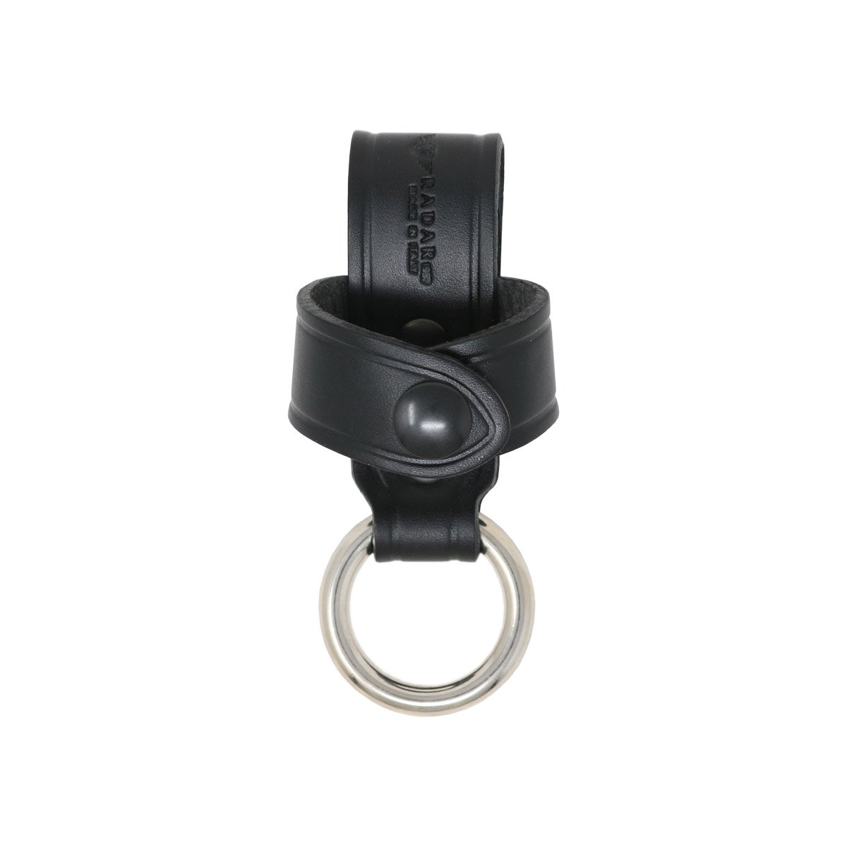 Porte bâton de défense doté d'un anneau de 30 mm de diamètre et d'un passant de ceinture cuir qui est sécurisé par des boutons pressions.