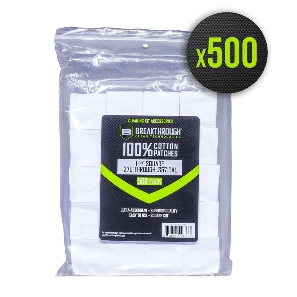 500 patchs de nettoyage en coton calibrés pour du .270 au .357 cal.