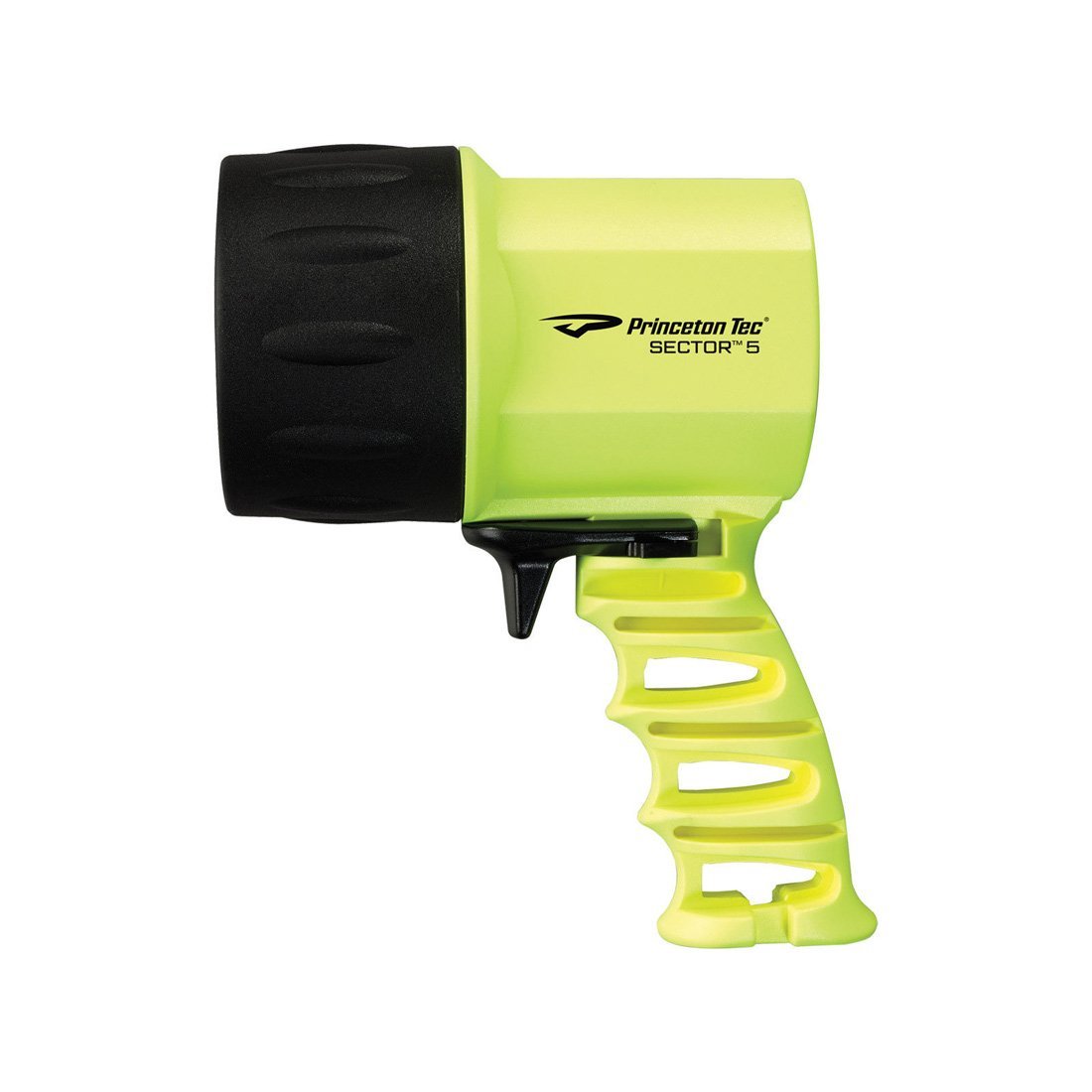 Le phare étanche Sector 5 offre un puissant faisceau de 550 lumens avec la commodité d'une poignée pistolet pour un éclairage momentané ou constant. Il est alimenté par 4 piles C qui offrent 24 heures d’autonomie. Le commutateur de déclenchement sur la poignée pistolet est facile à utiliser même avec des mains gantées. Le mode momentané se fait via une demi-traction et constante via une pleine traction. Ce commutateur se verrouille pour empêcher l'illumination accidentelle ou la décharge de la batterie pendant le transport ou le stockage.