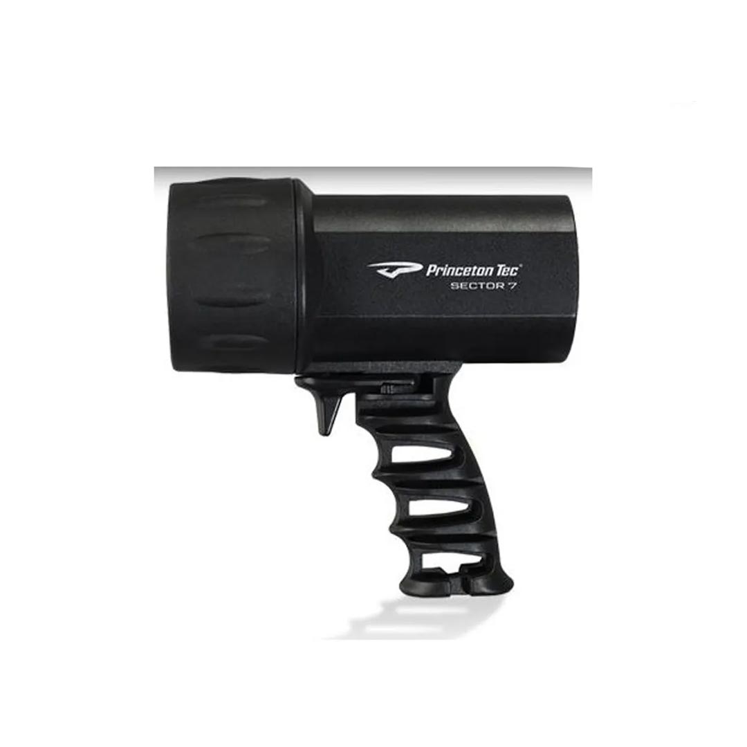 Le phare étanche Sector 7 offre un puissant faisceau de 700 lumens avec la commodité d'une poignée pistolet pour un éclairage momentané ou constant. Il est alimenté par 8 piles C qui offrent 30 heures de temps d’autonomie. Le commutateur de déclenchement sur la poignée pistolet est facile à utiliser même avec des mains gantées. Le mode momentané se fait via une demi-traction et constante via une pleine traction. Ce commutateur se verrouille pour empêcher l'illumination accidentelle ou la décharge de la batterie pendant le transport ou le stockage.