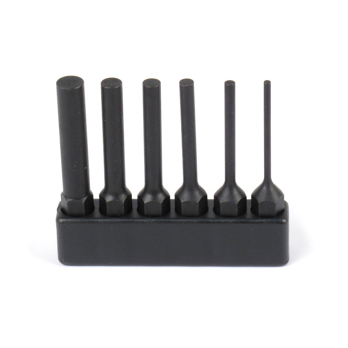 Jeu de six poinçons conçus pour s'intégrer au système Fix It Sticks. Les poinçons à goupille fonctionnent avec n'importe quel tournevis standard de 1/4" et sont usinés à partir de barres solides.