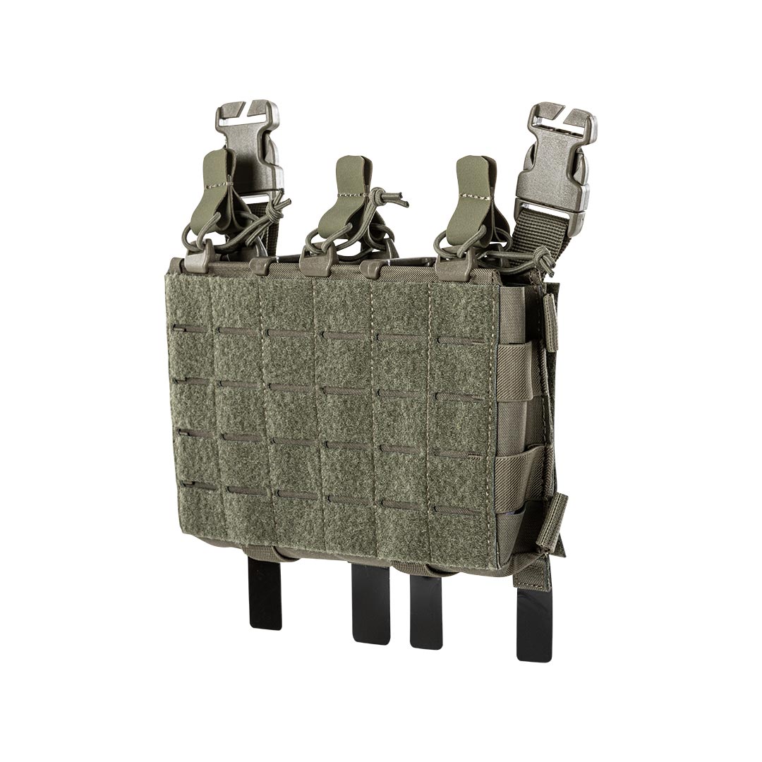 Augmentez vos options tactiques grâce à la polyvalence multi-mission de la poche de poitrine modulaire STS. Le système d'attache s'intègre parfaitement à la base du porte-plaques QR (ou à d'autres porte-plaques compatibles). Les plateformes MOLLE découpées au laser à l'avant et sur les côtés permettent de personnalisation et de la polyvalence très pratique. Le système Smart Track System™ (STS) en instance de brevet est une conception à double rail avec des séparateurs personnalisés amovibles et réglables et des kits de rétention élastiques pour assurer un ajustement et un maintien sécurisés du contenu. L'intérieur de la poche est également doublé de face autoagrippante et compatible avec les inserts autoagrippant mâle, y compris le séparateur, le rabat et le haut de la fermeture à glissière de la mini pochette modulaire (56835). Il peut contenir 3 chargeurs AR/5.56 ou 2 chargeurs AK/7.62 ou d'autres équipements, accessoires.