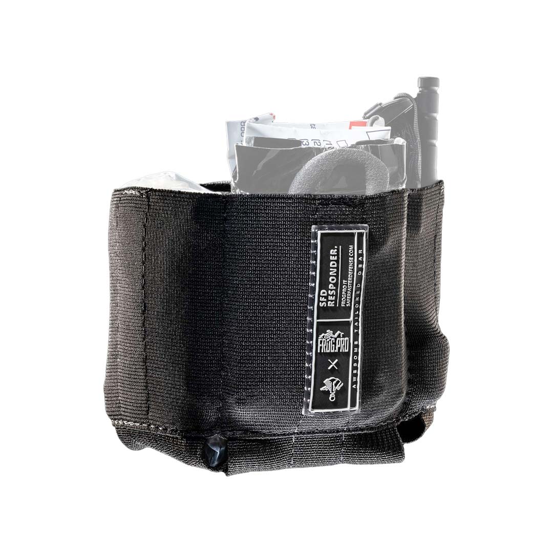 Système de transport élastique non conventionnel pour la trousse de premiers soins individuelle (IFAK) conçue pour être portée à la cheville. Cachée à la vue mais toujours disponible, elle permet d’avoir avec soi en permanence et de façon discrète tous les éléments de base de premiers secours d’urgence. Le SFD-Responder 2.0 est constituée d'une double bande élastique qui permet une bonne adaptabilité à la taille et à la forme des produits transportés. Une bonne trousse de premiers soins doit être le premier choix de chaque opérateur avant d'aborder n'importe quelle mission, mais aussi aujourd’hui le premier choix de chaque citoyen qui prend soin de sa sécurité et de celle de ses proches.