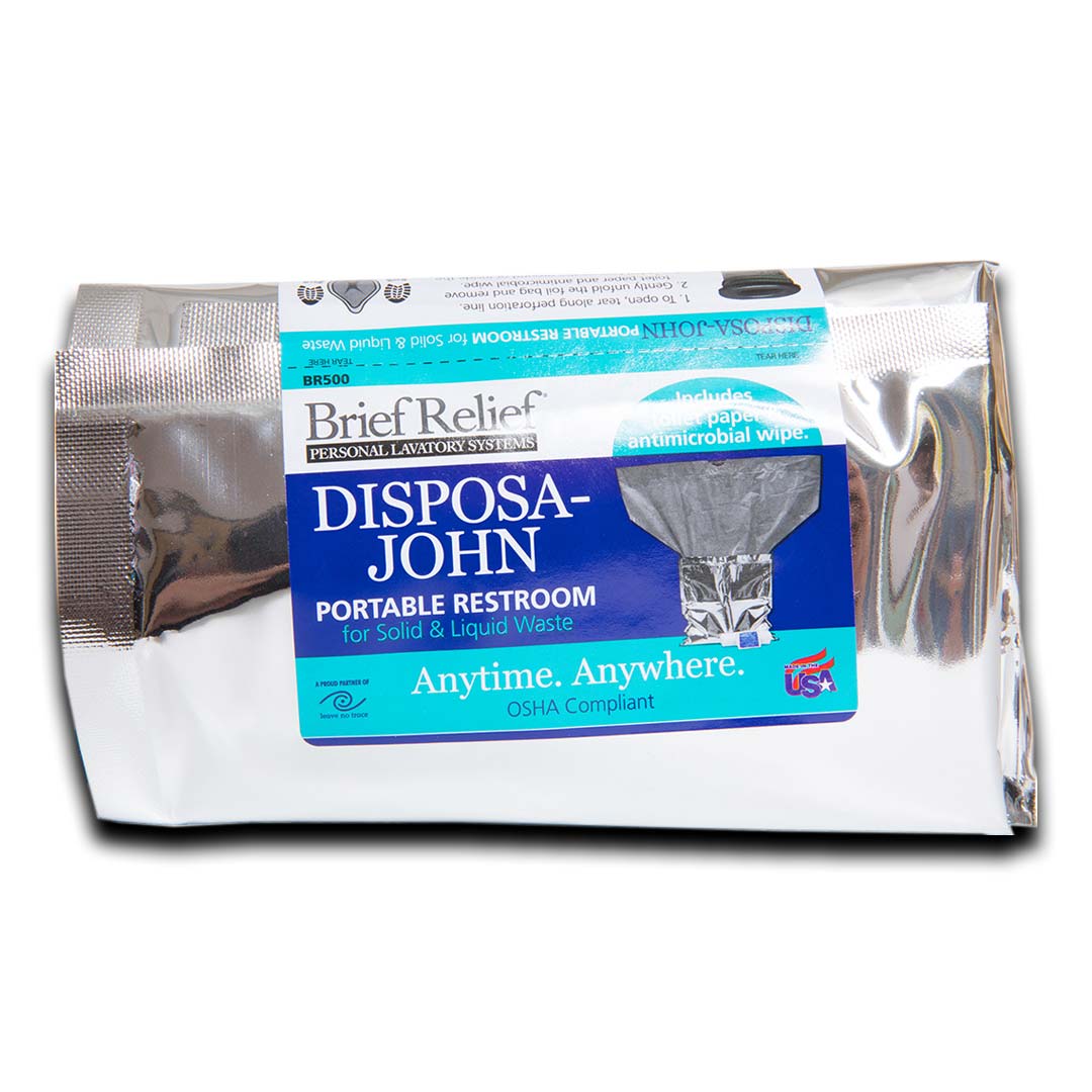 La solution sans eau, le kit "Brief Relief Disposa-John" contient tout ce qu'il faut pour éliminer en toute sécurité les déchets humains solides. La conception brevetée de "sac dans le sac" et la fermeture à glissière finale contiennent en toute sécurité les déchets et les odeurs. Le mélange spécial de polymères et d'enzymes commence instantanément à décomposer les déchets et à les convertir en un gel désodorisé.