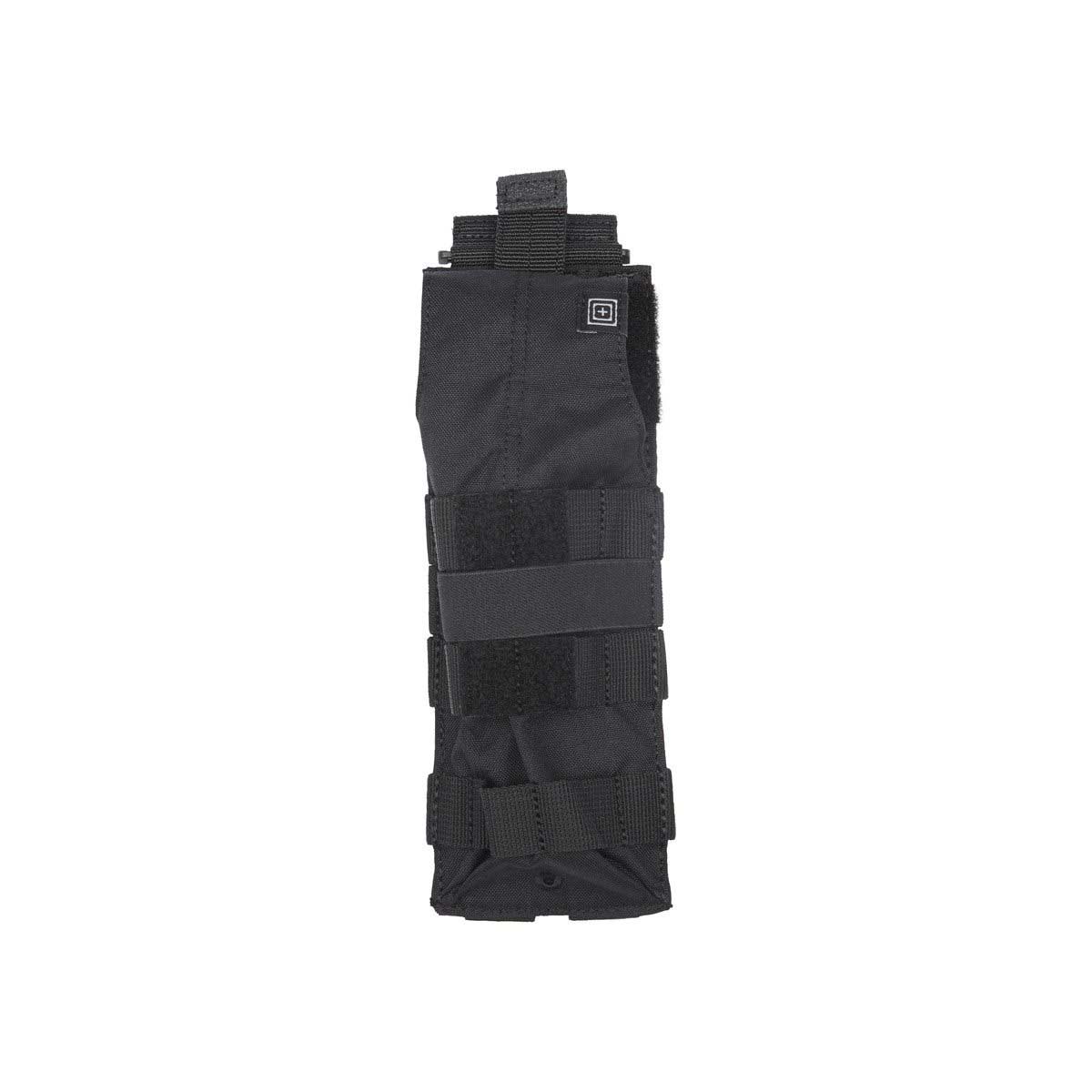 Poche tactique avec rabat pour une paire de menottes rigides. Selon le contexte, le rabat supérieur de la poche se place différemment.