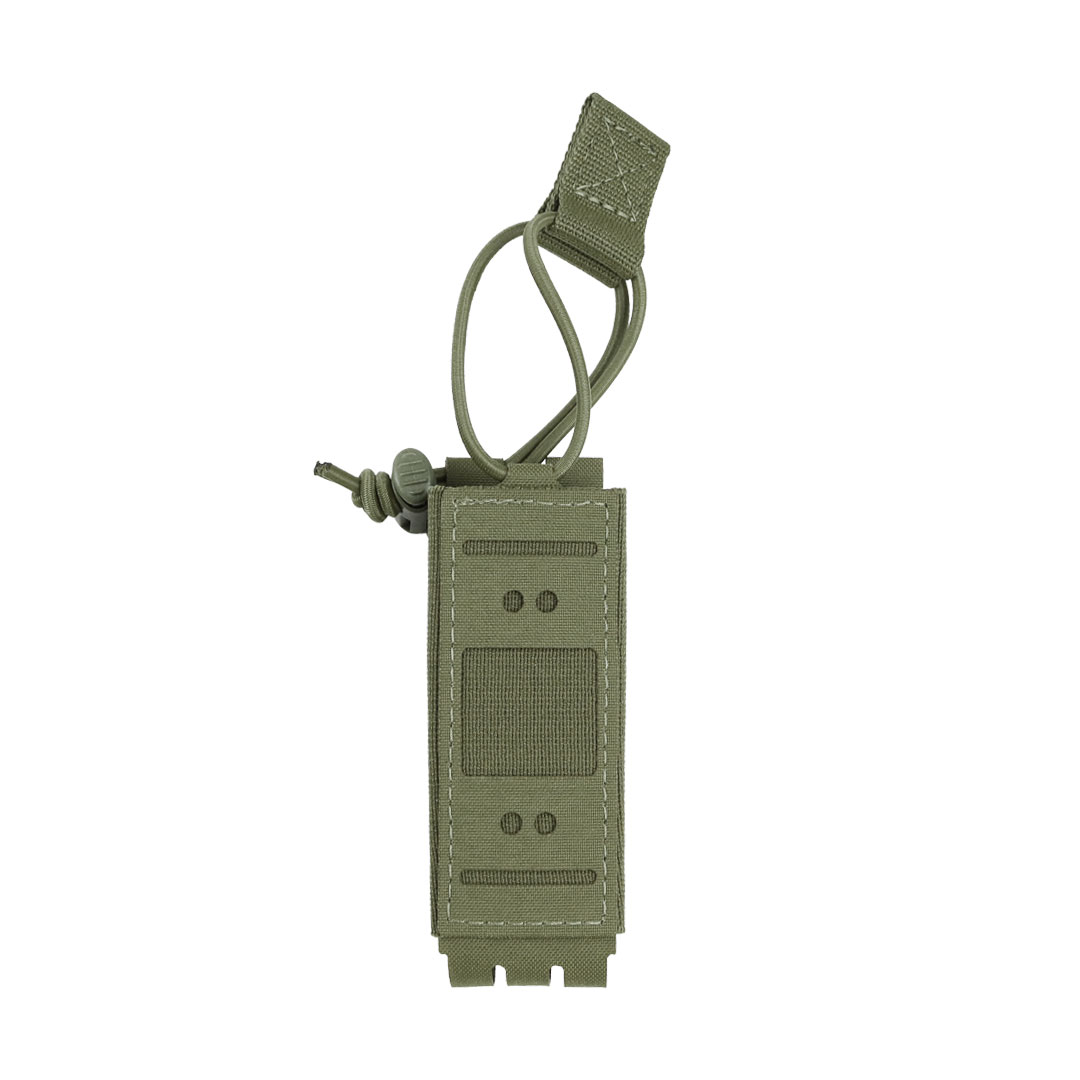 Le porte-chargeur Pistol SMG 1 EOT Single en coloris Ranger Green est conçu pour accueillir différents types de chargeurs de pistolet et de pistolet mitrailleur (9mm / .45 / SMG). Léger, compact et robuste, il garantit une extraction fluide et une réinsertion rapide grâce à son cordon élastique amovible. Ses bandes latérales élastiques permettent d’ajuster la rétention à différents calibres, tandis que le système MOLLE WTFix exclusif FROG.PRO assure une fixation stable et fiable sur tout équipement tactique.