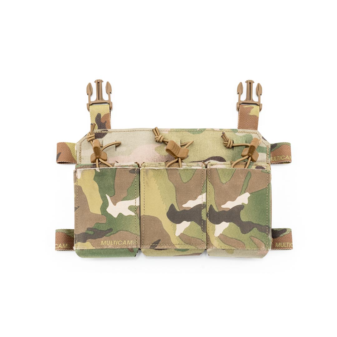 La plaque de poitrine à trois chargeurs est livrée en standard avec les inserts MP2 exclusifs permettant de retenir en toute sécurité la plupart des chargeurs de 5,56x45, 5,45x39, 7,62x35, 7,62x39 et 7,62x51 sans avoir recours à des élastiques ou à des rabats. La pochette de chargeur à encliquetage positif permet un tirage en douceur sans affecter la capacité à réintroduire rapidement les chargeurs partiels lors d'un rechargement tactique. Les MP2 sont également amovibles, ce qui permet à l'opérateur d'y placer des radios, des télémètres laser ou des trousses médicales dans l'espace clos. Le TRMP possède trois poches élastiques tissées à l'avant , deux passants et une poche fermée. Cela permet de ranger en toute sécurité des chargeurs supplémentaires, des garrots, des tubes de choc, des charges, des cartes, des boussoles, des lampes de poche ou tout autre kit essentiel, tout en conservant un profil incroyablement léger et fin.