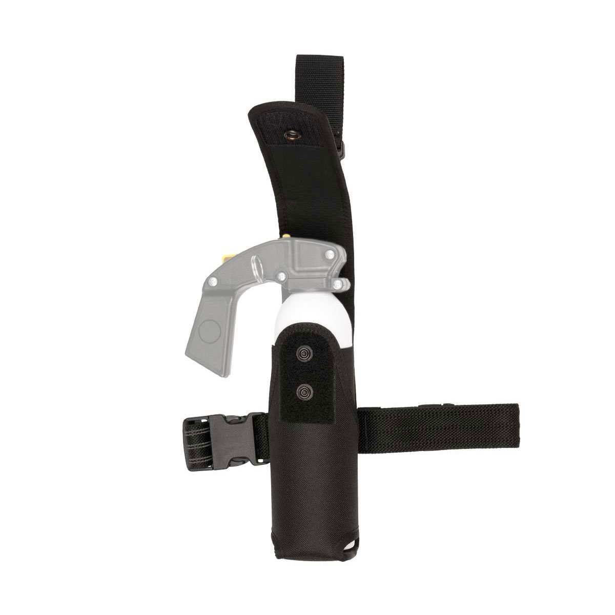 Porte Gazeuse rembourré conçue pour transporter une gazeuse de 400/500 ml dotée d'une poignée pistolet. Elle possède une fermeture rabat et se fixe à la cuisse ou à la ceinture. Elle se maintient à la cuisse grâce à sa sangle antidérapante réglable et dé clipsable.
