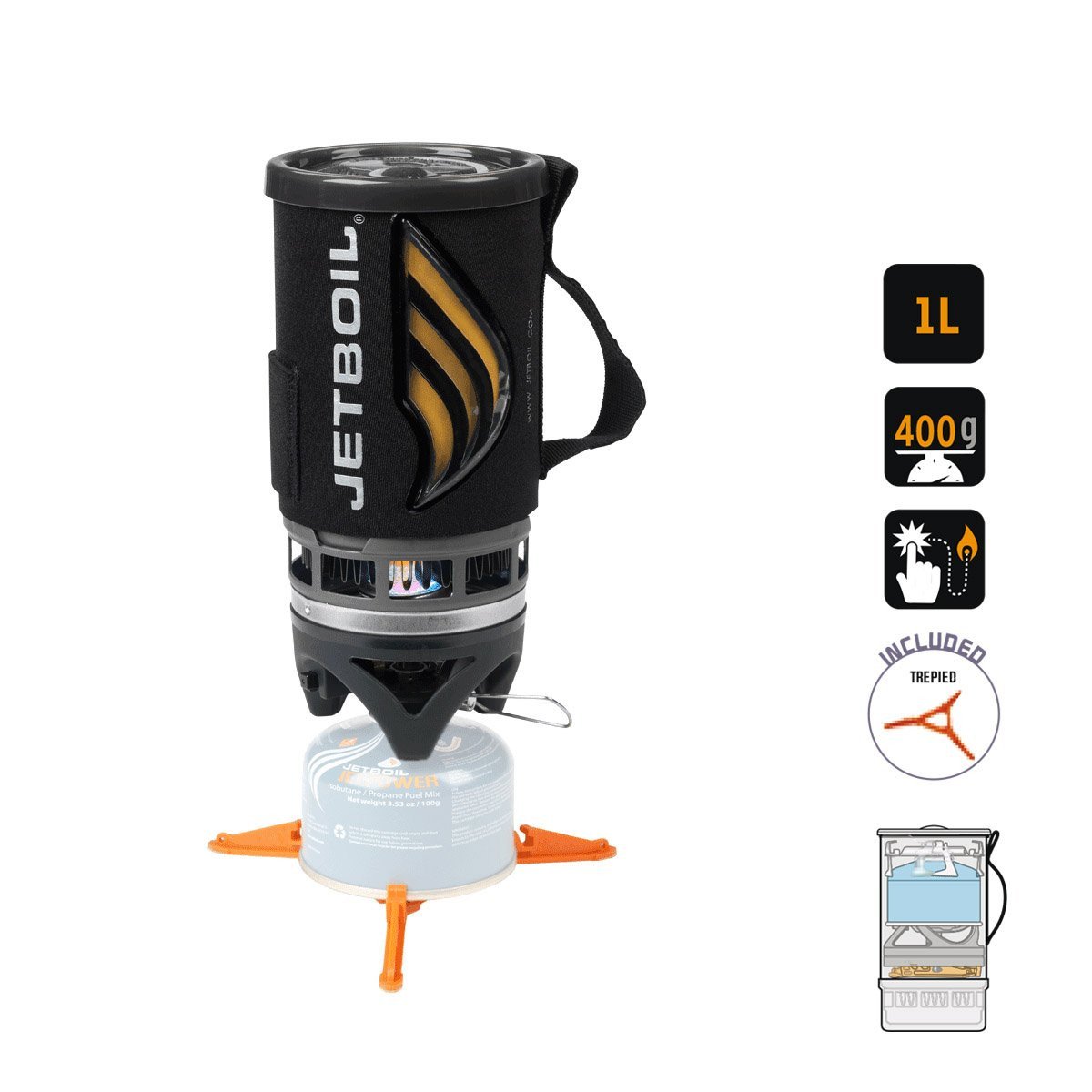 - Compatible avec tous les accessoires Jetboil