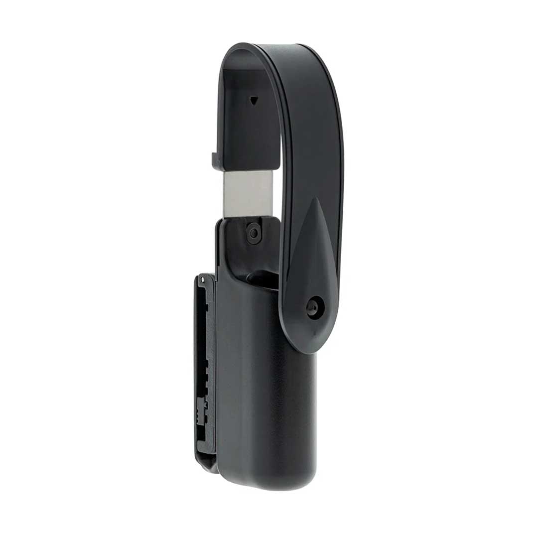 Tout comme un étui d'arme à feu à rétention avancée, le Revolution Scabbard, conçu spécialement pour les bâtons ASP Talon, offre un niveau de sécurité élevé sans compromettre la rapidité d'accès. Il suffit d'appuyer et de faire pivoter le couvercle, puis de tirer le bâton, le tout en une série de mouvements rapides, doux et intuitifs. L'étui en polymère à fond fermé permet de refermer le bâton Talon directement dans le fourreau, et le couvercle se verrouille automatiquement lorsqu'il est remis en mode de rétention. Le Revolution Scabbard est ambidextre et comporte le clip Snap-Loc breveté par ASP. Il est ajustable pour s'adapter à des ceintures jusqu'à 2,25" de large, ou à des équipements MOLLE, et permet au fourreau de pivoter de 180 degrés et de prendre 7 positions de transport par clic.