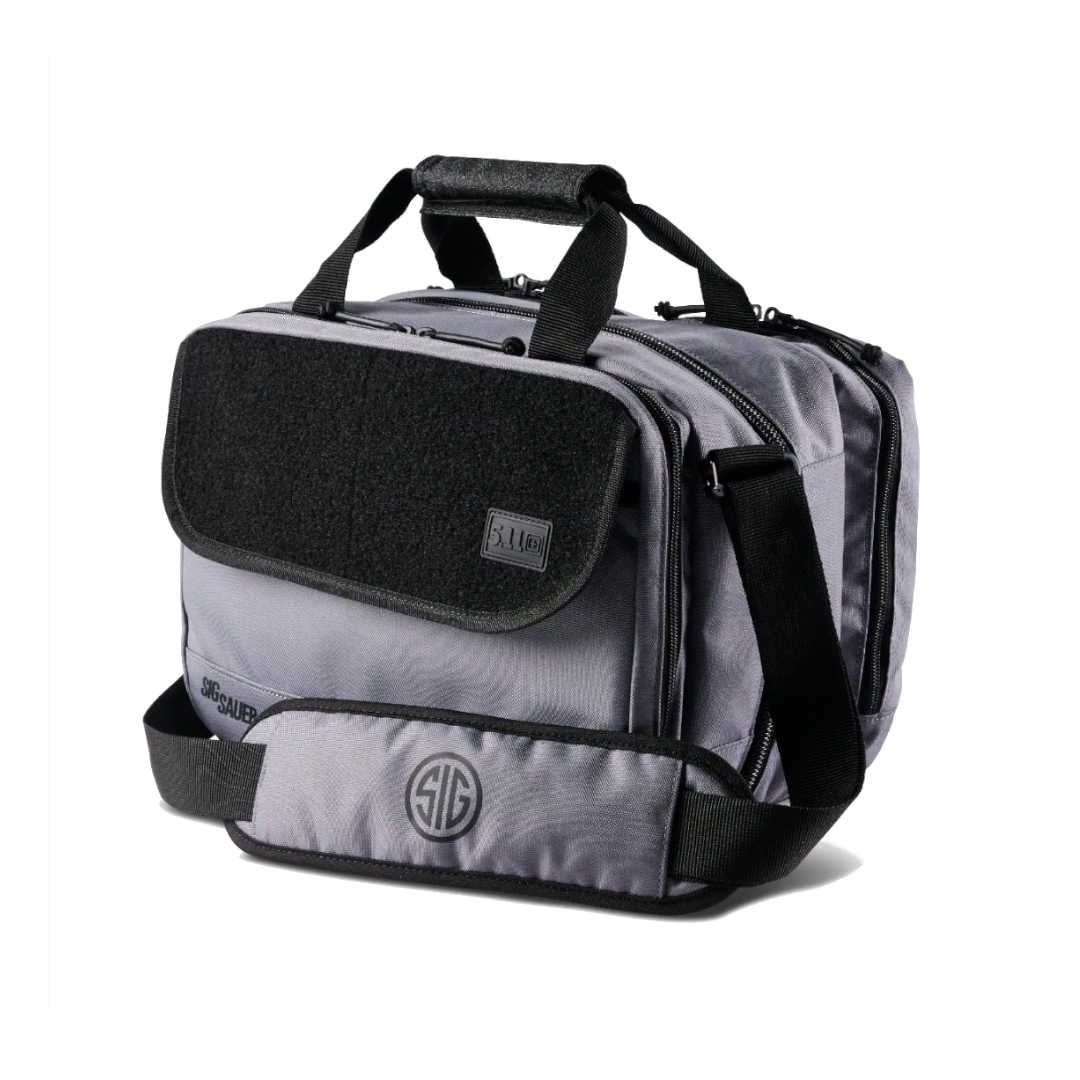 Il est facile de s'organiser grâce au sac Range Ready Pro à poches multiples. Co-marqué Sig Sauer®, ce sac robuste et rembourré est équipé de fermetures à glissière YKK verrouillables. Il est fabriqué en polyester 600D durable et résistant aux intempéries, avec un fond en TPU pour protéger votre équipement. Une poche frontale à fermeture Éclair comprend une pochette pour les documents, des boucles élastiques et un panneau de démontage nettoyable. Dans la poche principale, il y a deux poches rembourrées à fermeture Éclair pour le rangement des pistolets, ainsi qu'un séparateur amovible avec des bandes élastiques et un panneau MOLLE en toile. Deux poches arrière à fermeture Éclair avec un revêtement MOLLE permettent de ranger des accessoires. Une poignée supérieure et une bandoulière rembourrée amovible font du Range Ready Pro une solution idéale pour l'entraînement au pistolet et les qualifications.