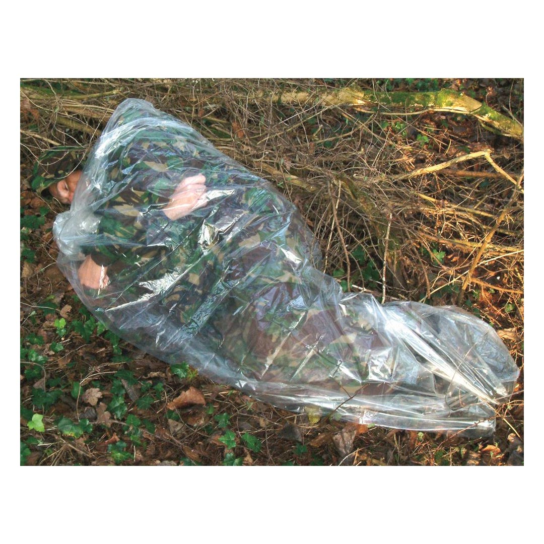 Ce sac de couchage d'urgence de gabarit moyen (210 x 90 cm) est en polyéthylène. Compact et léger (144g), il sert de protection contre les éléments de la nature ou comme sac étanche sur un sac de couchage, il garde également la chaleur du corps à l'intérieure. Idéal pour la survie. Conditionné sous vide avec une taille de 10 x 20 x 3 cm.
