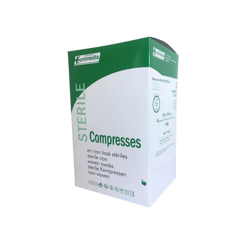 Des compresses stériles de qualité optimale pour les premiers soins. Format 10x10 cm, grande résistance à l'étirement et haut pouvoir d'absorption.