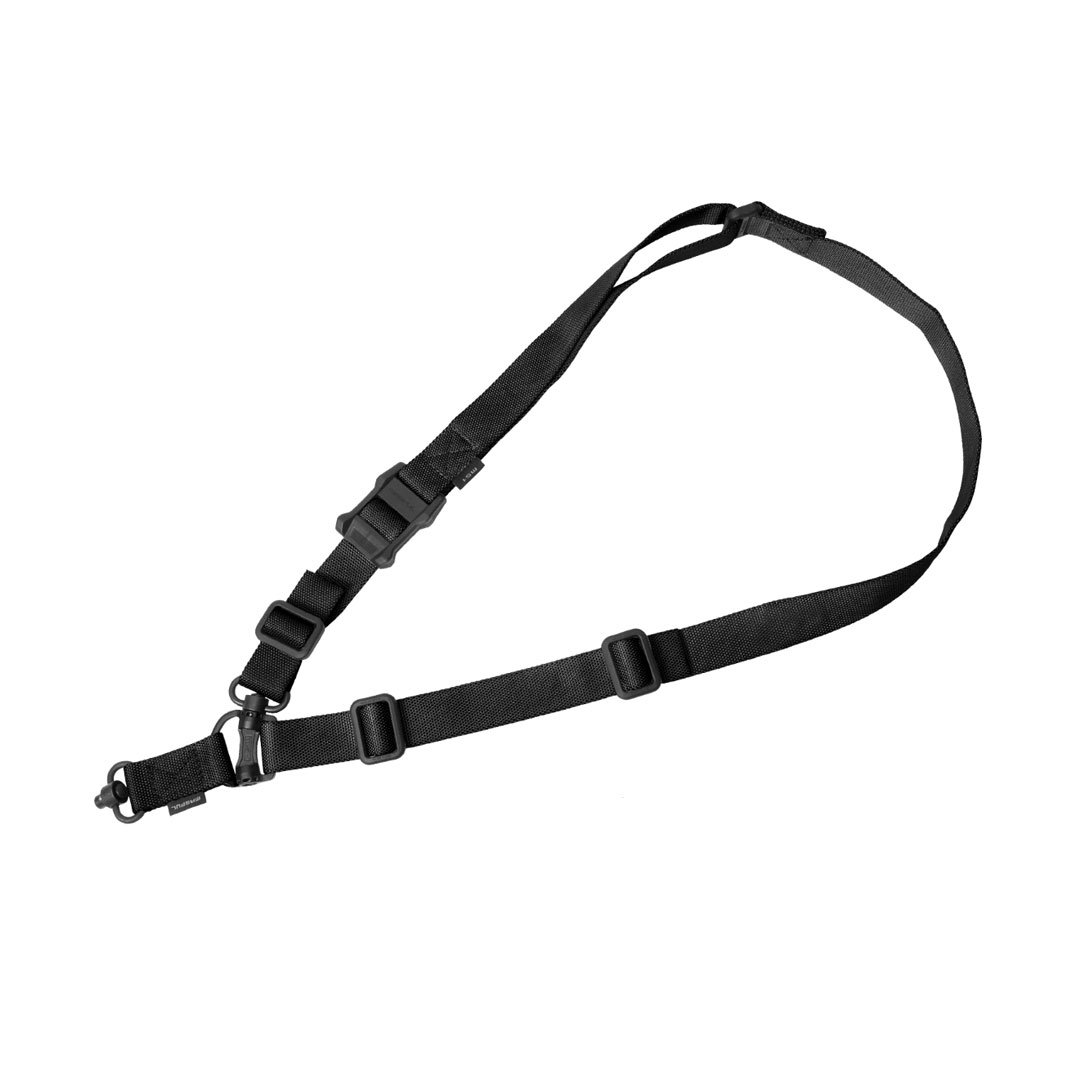 Sangle 1 point Magpul de seconde génération. Facilement transformable en configuration 2 points, cette sangle à la particularité d'être dotée d'un double montage QD qui permet de la clipper directement sur la plupart des lower de fusils type AR15/M4, et d'autres part de venir attacher la seconde extrémité sur un insert QD présent au niveau du garde main. Réglable aisément directement sur l'opérateur, elle est très pratique à manipuler lors des transitions (passage d'un muret, position de tir debout, couchée etc....)