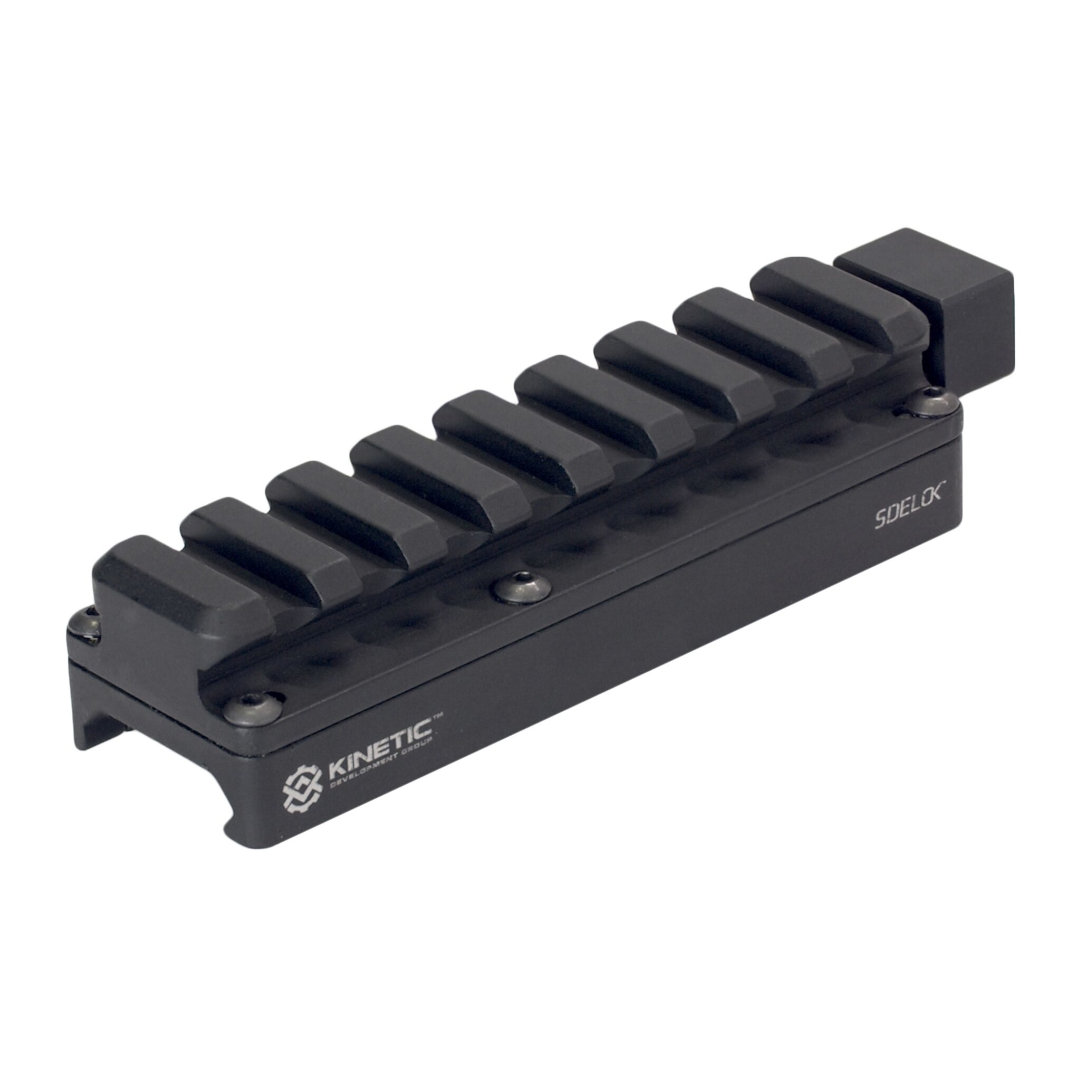 Conçu pour résister aux contraintes opérationnelles, le Sidelok Universal Riser Long assure un verrouillage extrêmement stable, même sous fort recul ou lors de manipulations dynamiques. Sa construction en aluminium usiné, associée à une finition anodisée noire, offre durabilité et fiabilité sur le long terme.
