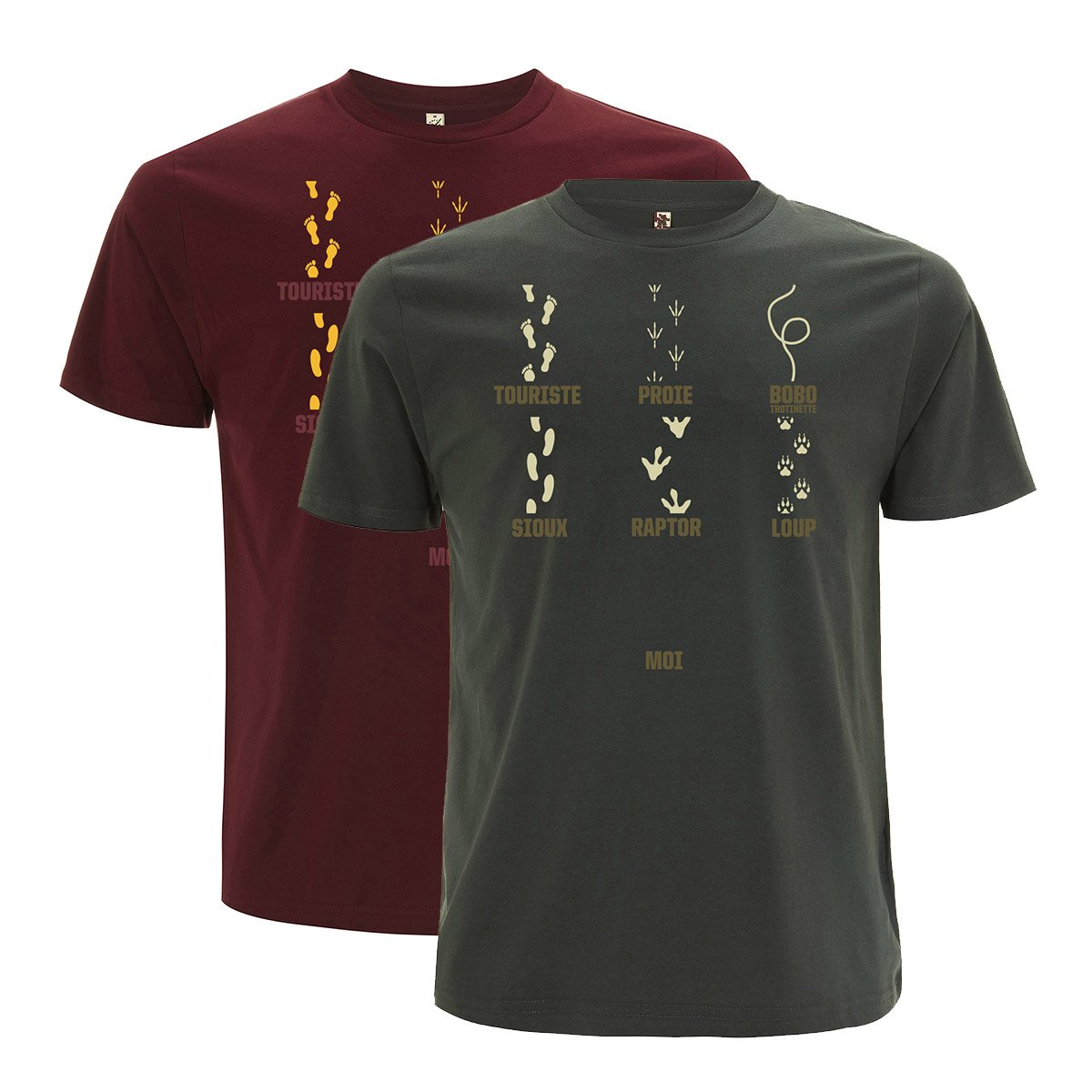 Ce tee shirt 100% coton biologique représente des traces et des empreintes. On peut être un ours asocial qui s'assume et avoir de l'humour.